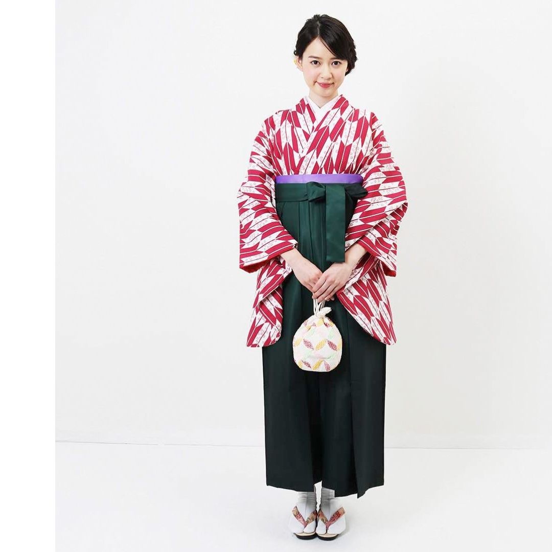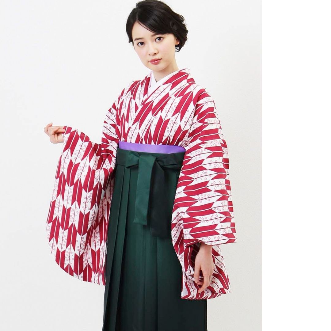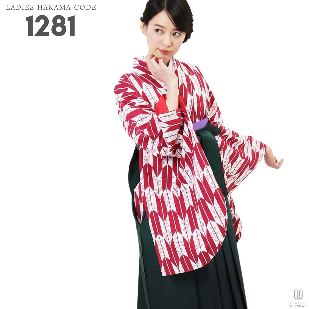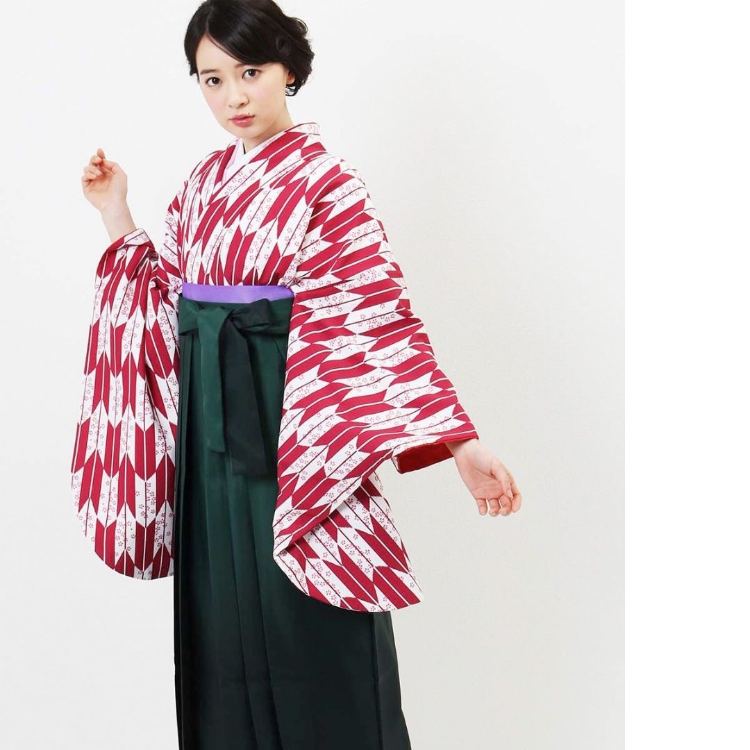 【対応身長 157cm~165cm】【正統派】 卒業式レンタル袴フルセット-1281 矢絣 白 ピンク 赤