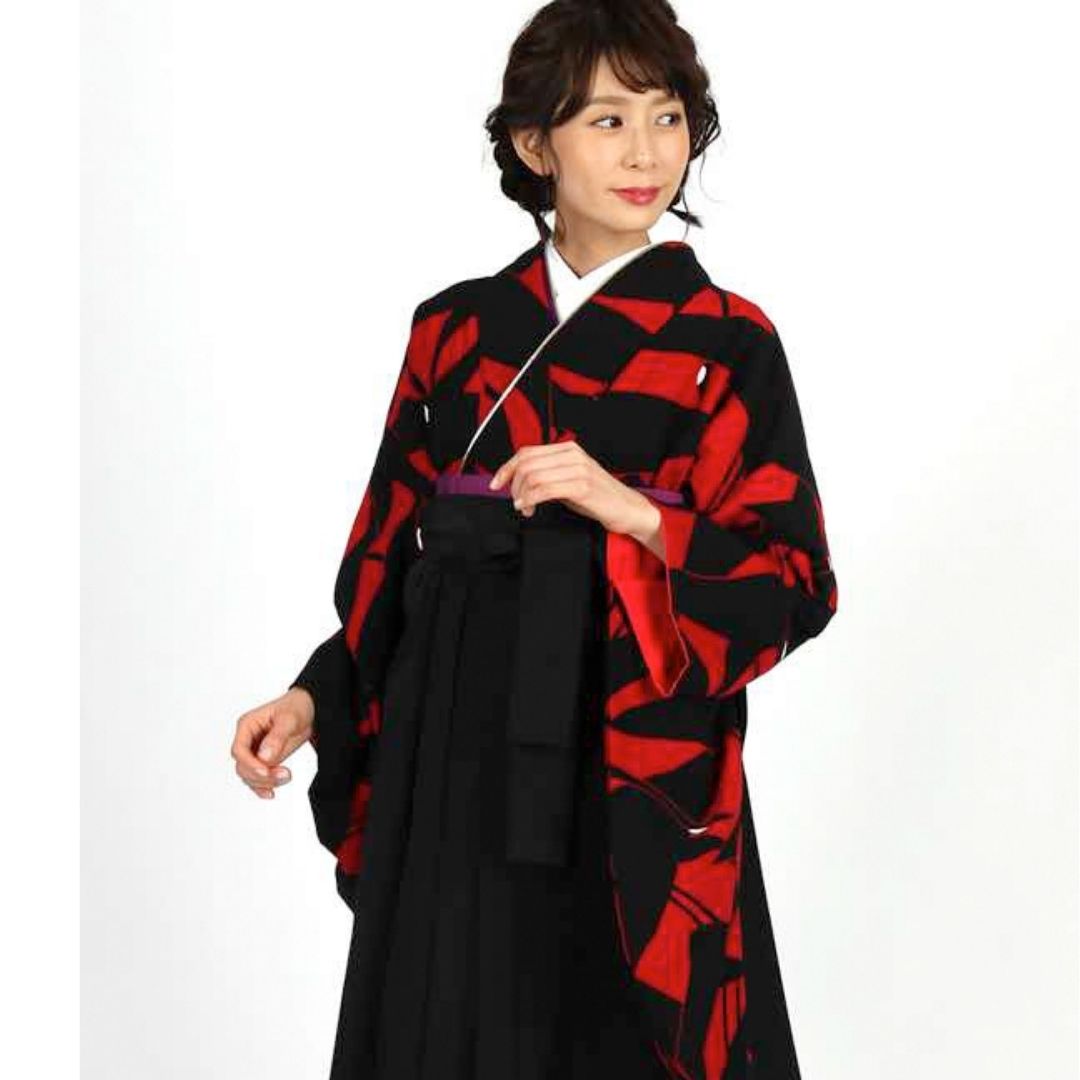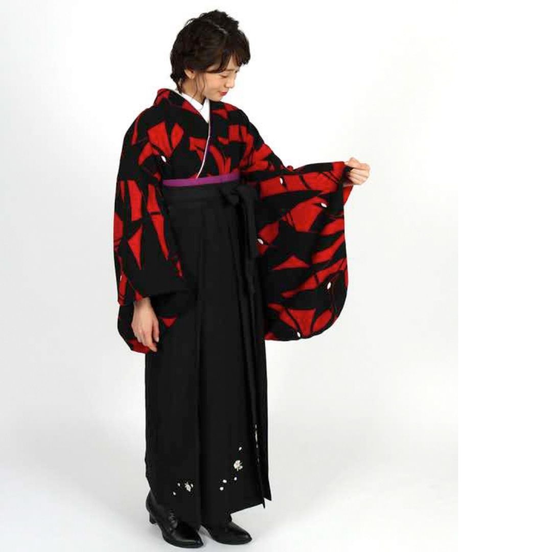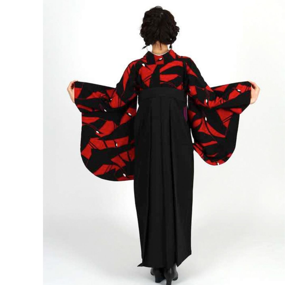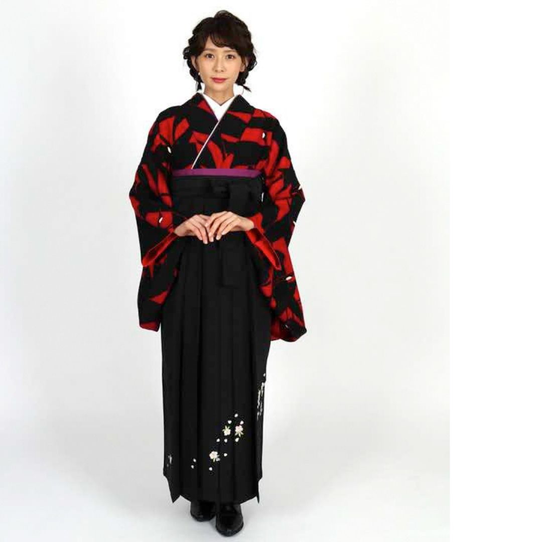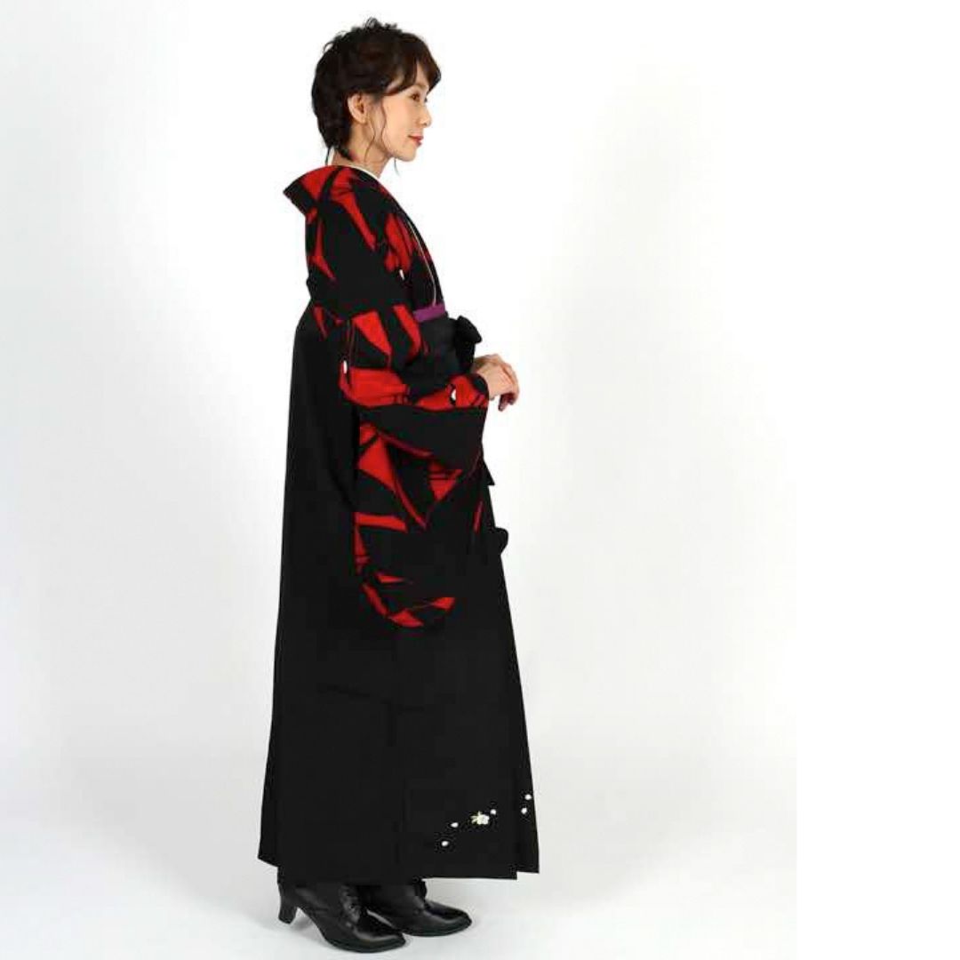 【対応身長 157cm~165cm】【正統派】 卒業式レンタル袴フルセット-1273 鶴 黒 赤