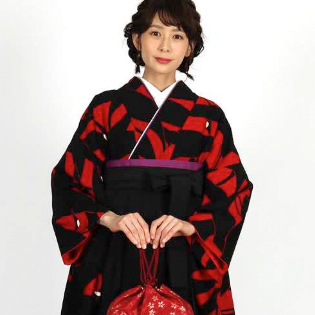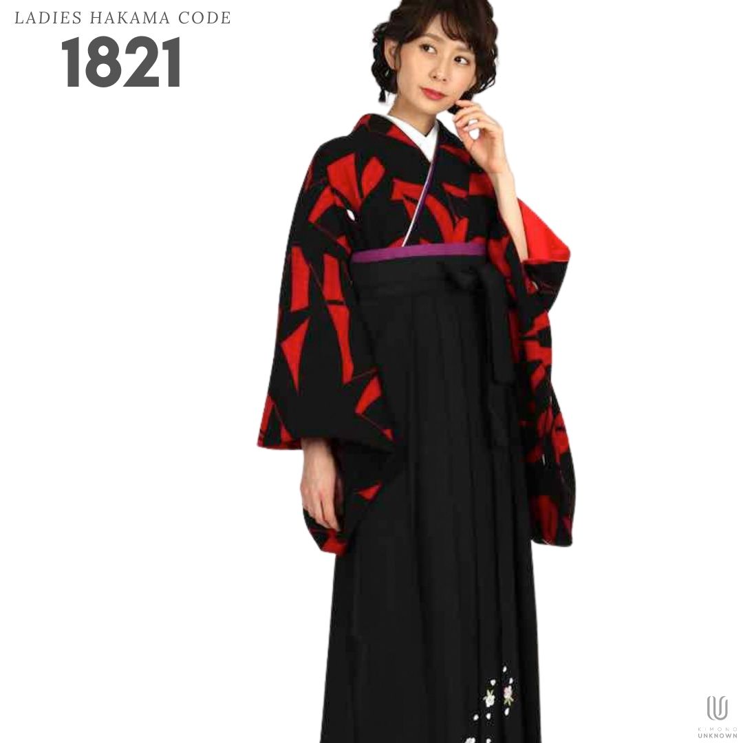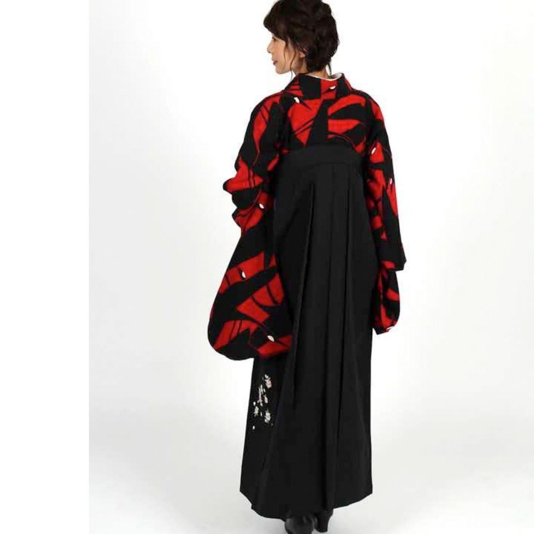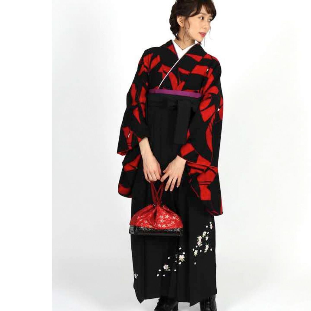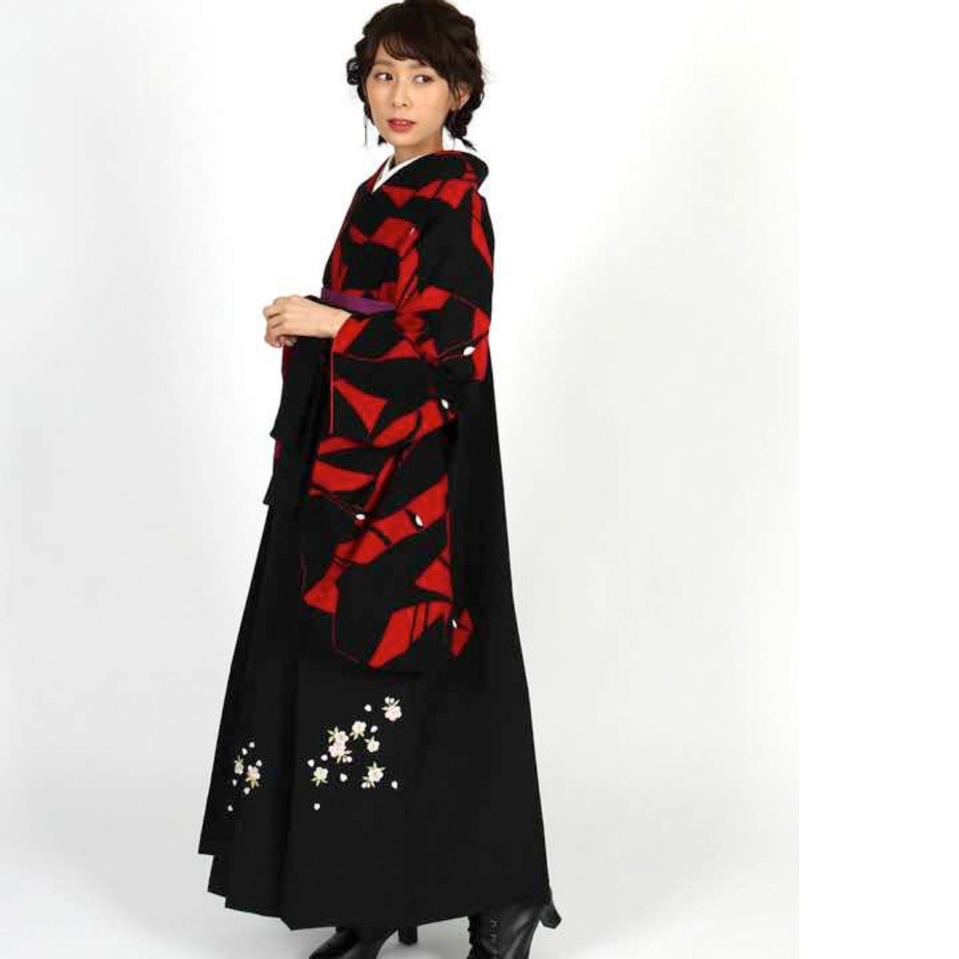 【対応身長 157cm~165cm】【正統派】 卒業式レンタル袴フルセット-1273 鶴 黒 赤