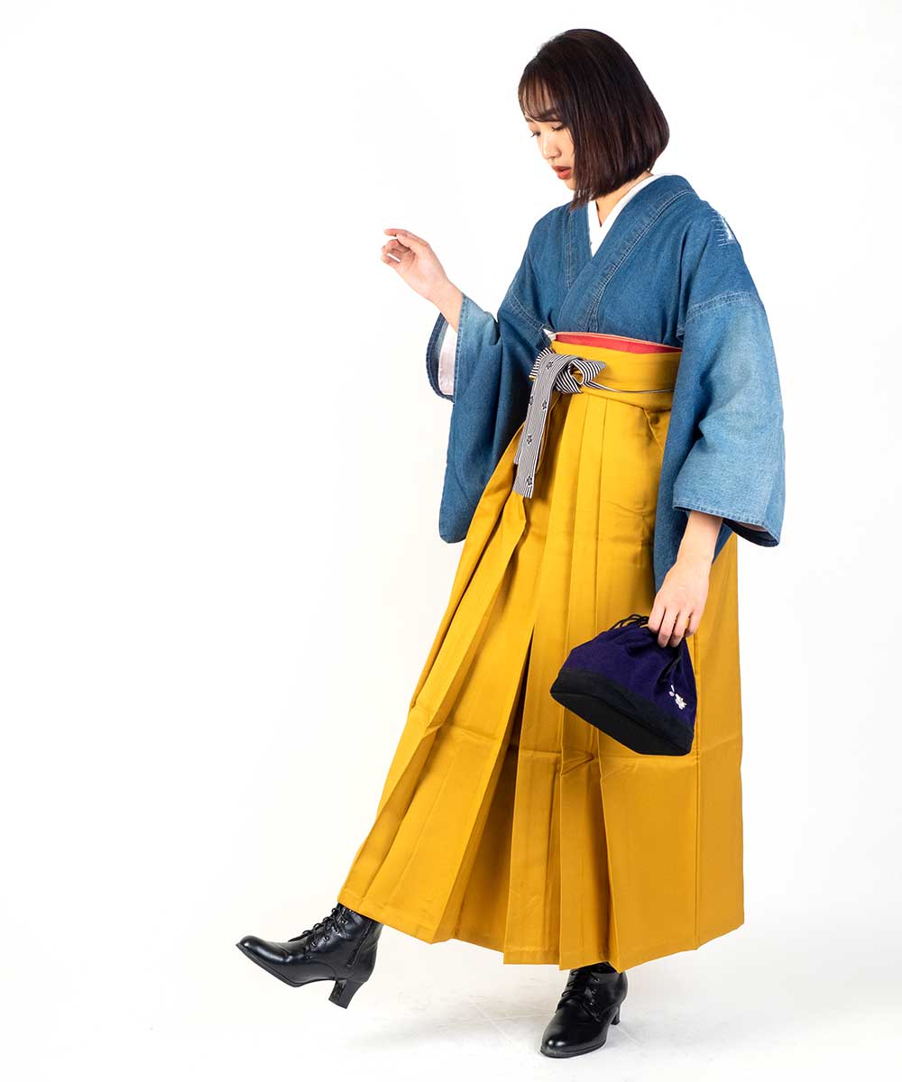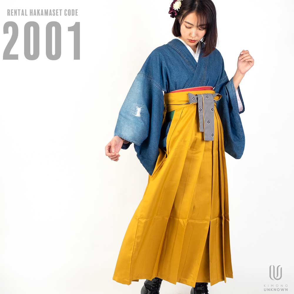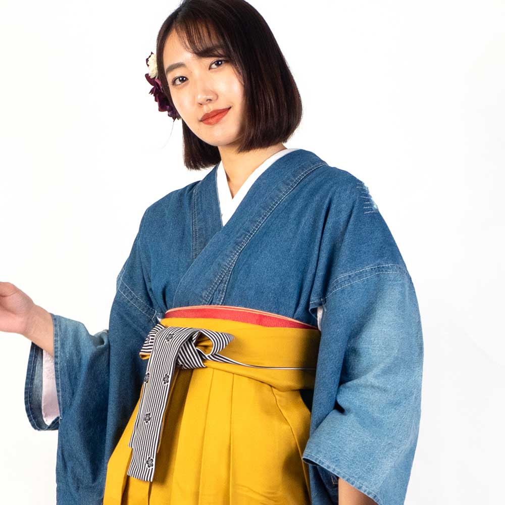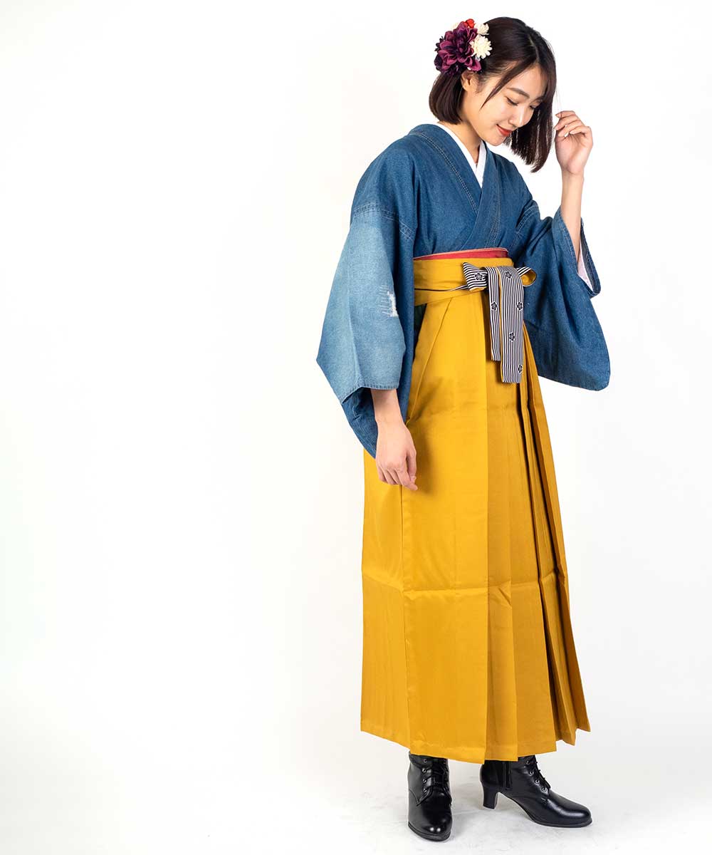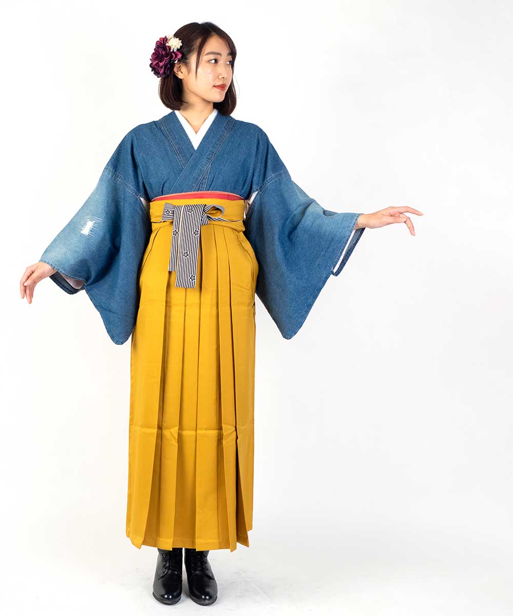 【対応身長 150cm~157cm】【キュート】 卒業式レンタル袴フルセット-2001 クラッシュデニム 青 水色 黄色