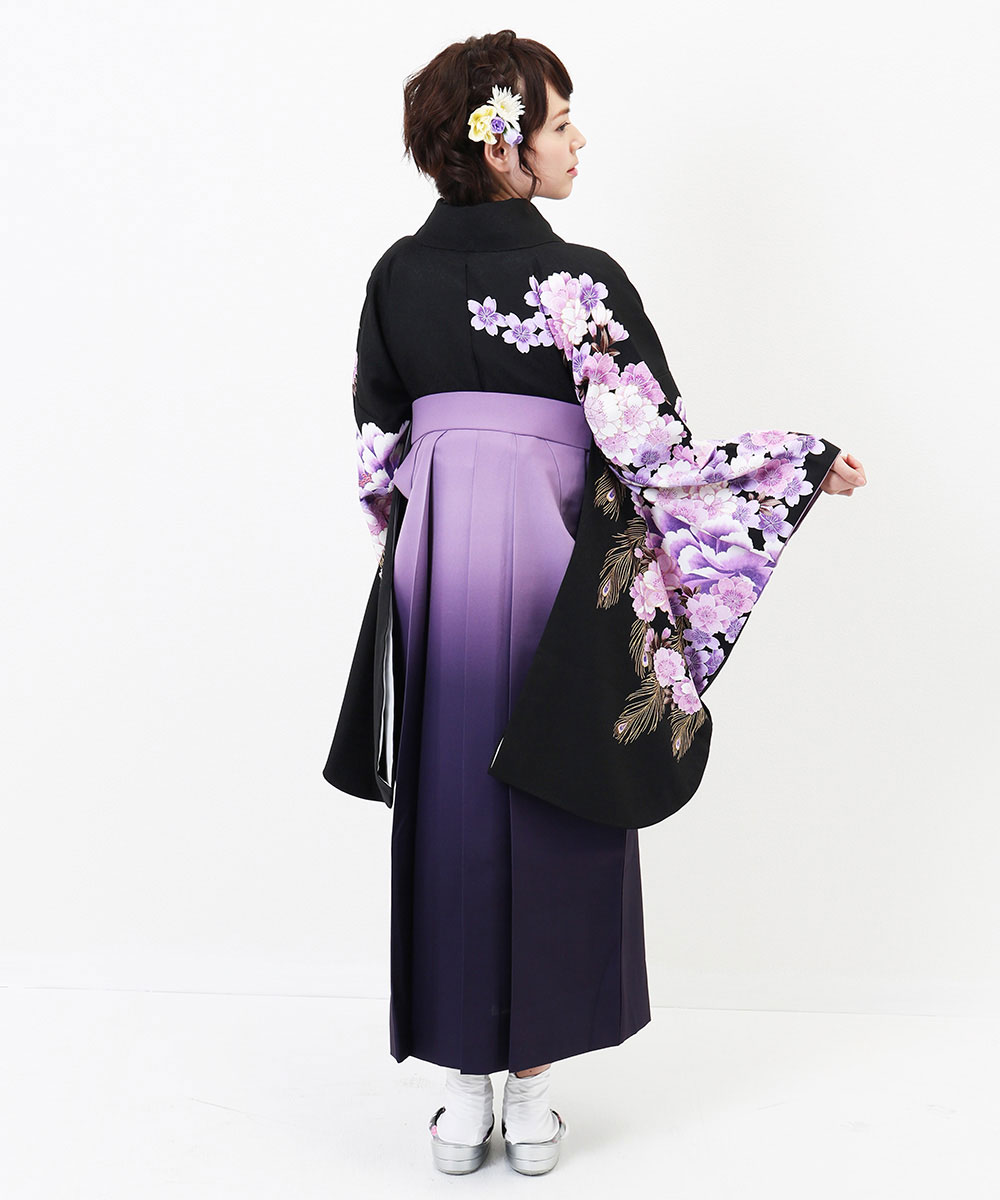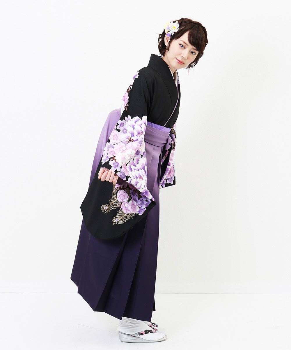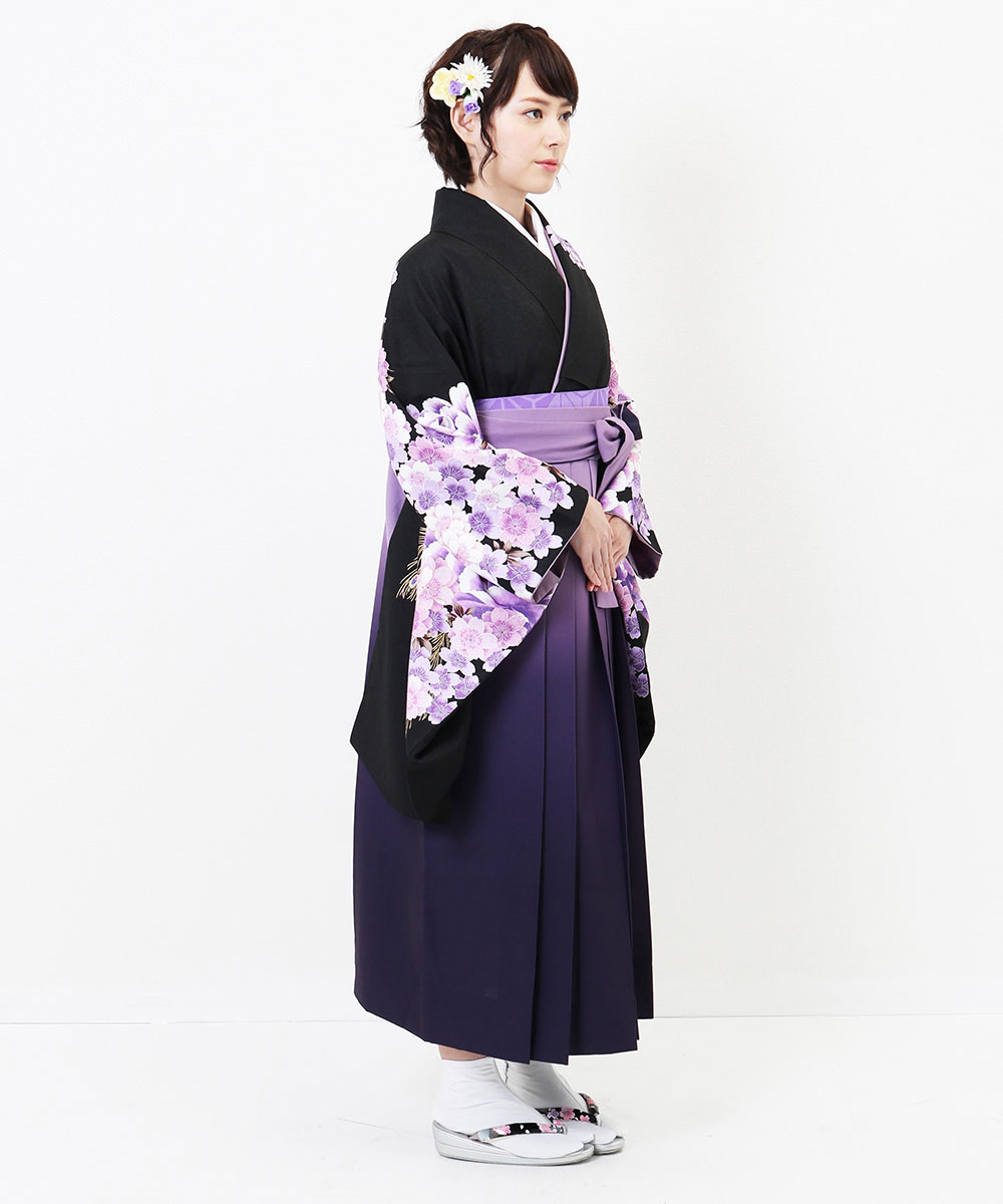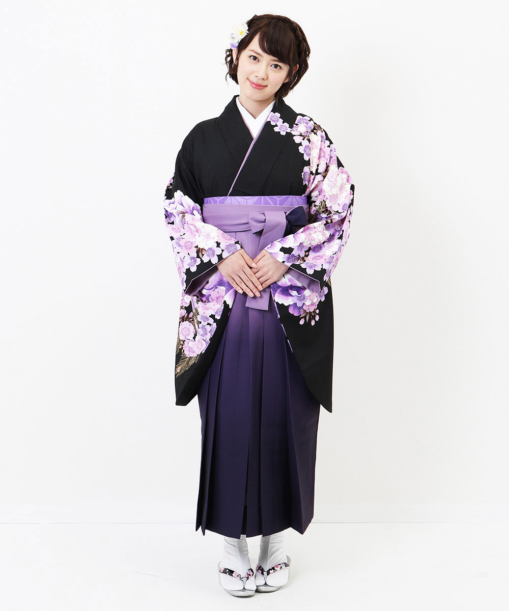 【対応身長 157cm~165cm】【正統派】 卒業式レンタル袴フルセット-2005 花柄 黒 紫