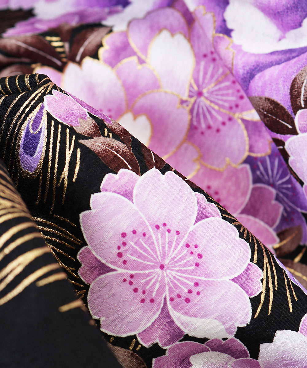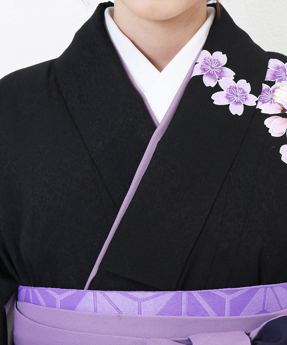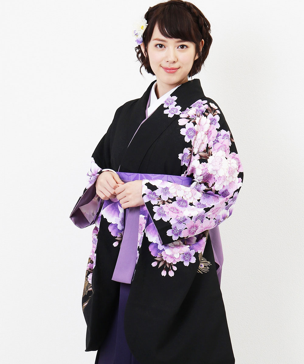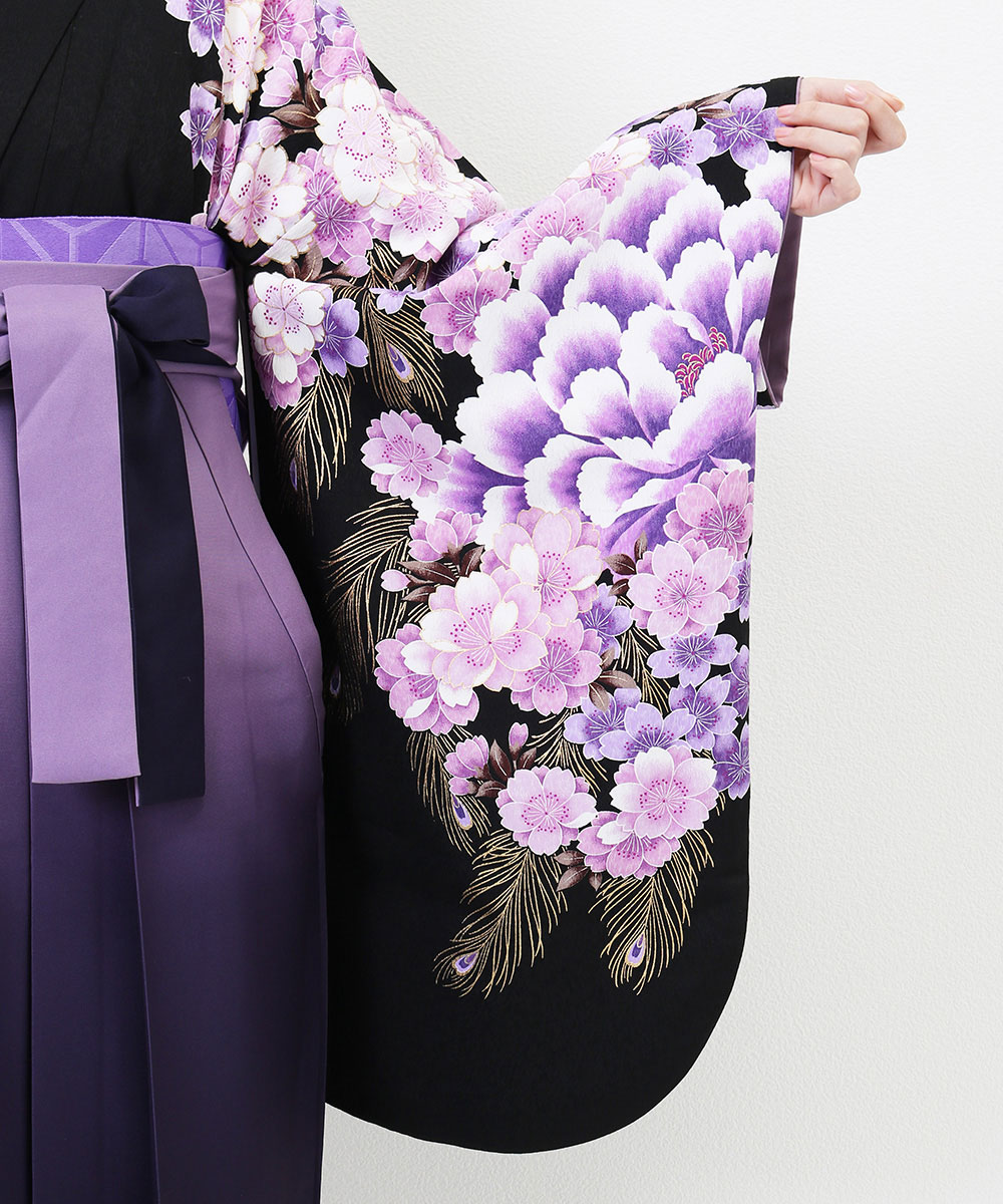 【対応身長 157cm~165cm】【正統派】 卒業式レンタル袴フルセット-2005 花柄 黒 紫