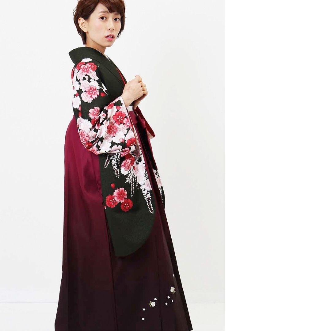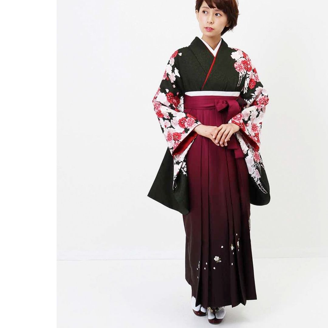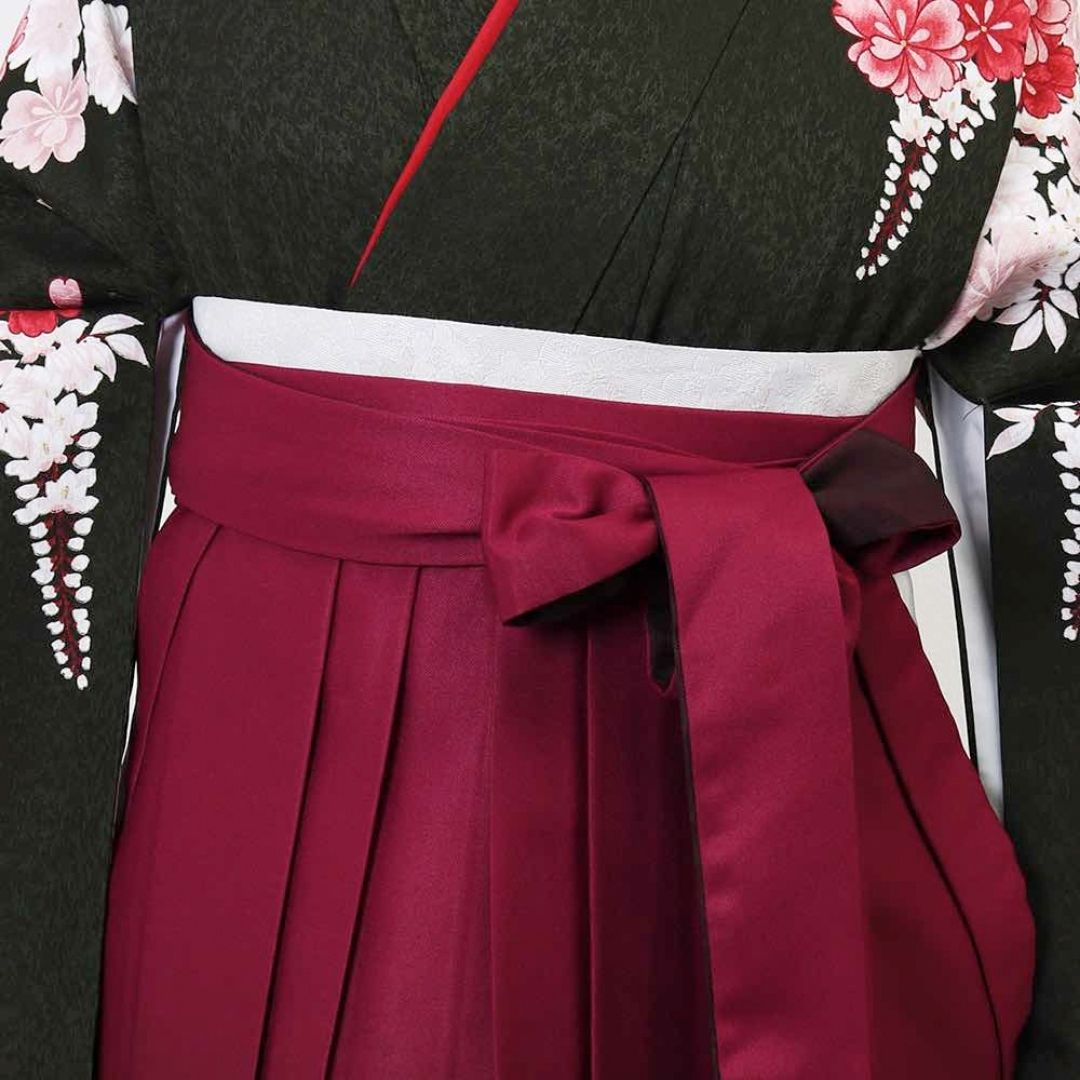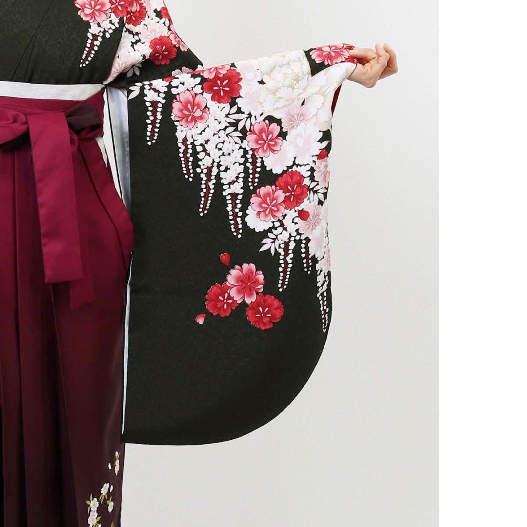 【対応身長 157cm~165cm】【正統派】 卒業式レンタル袴フルセット-2007 花柄 黒 赤