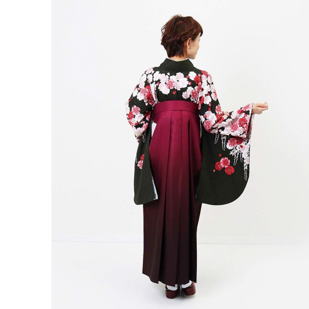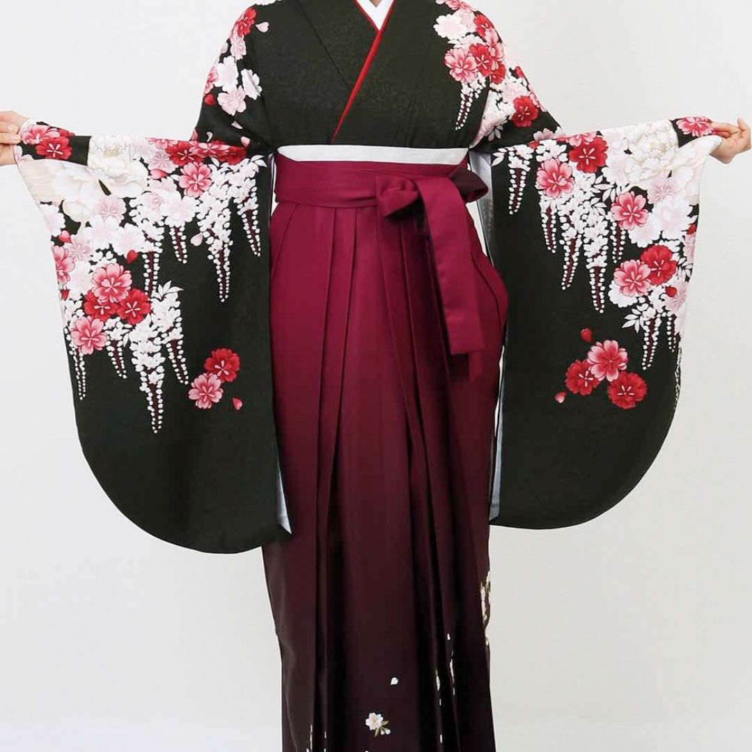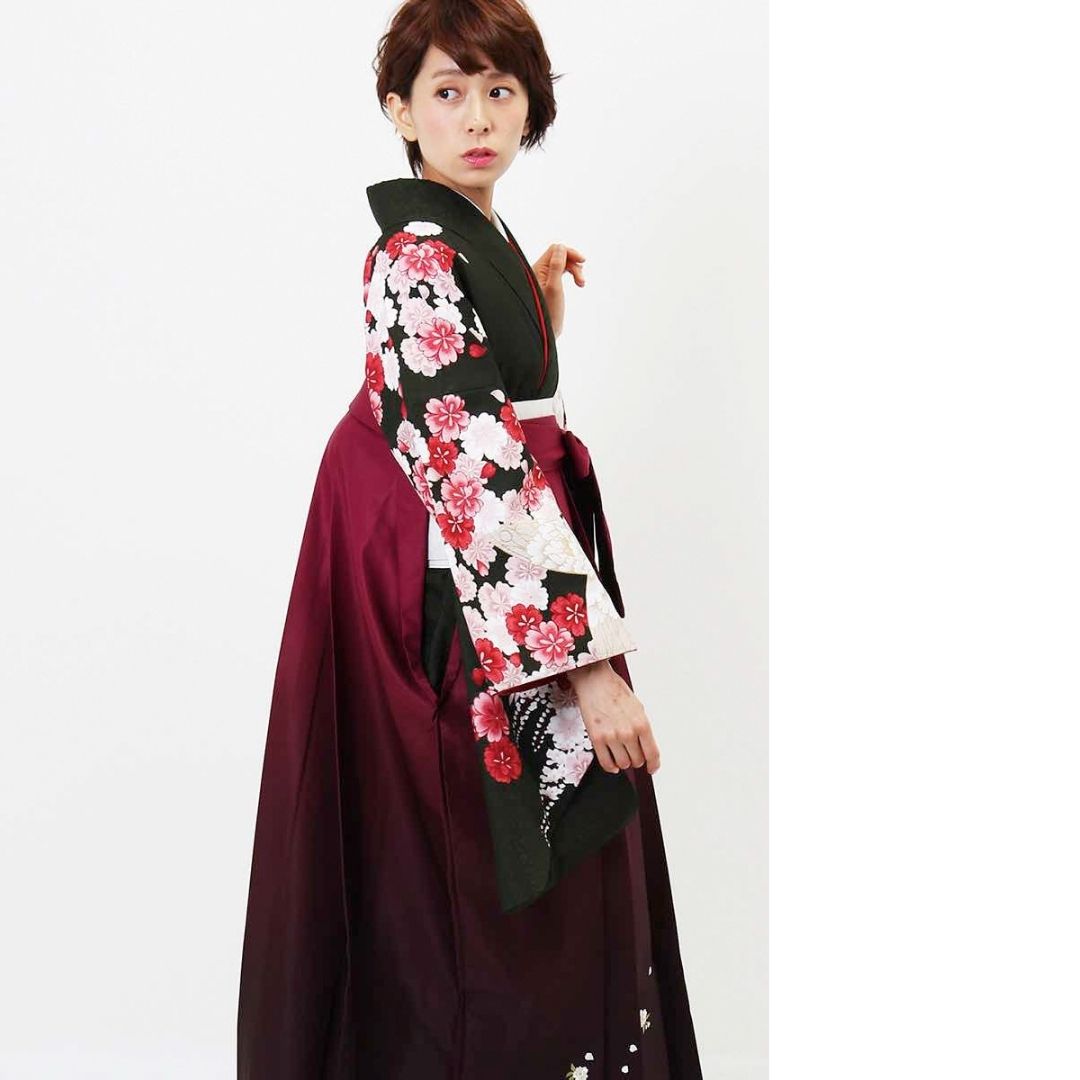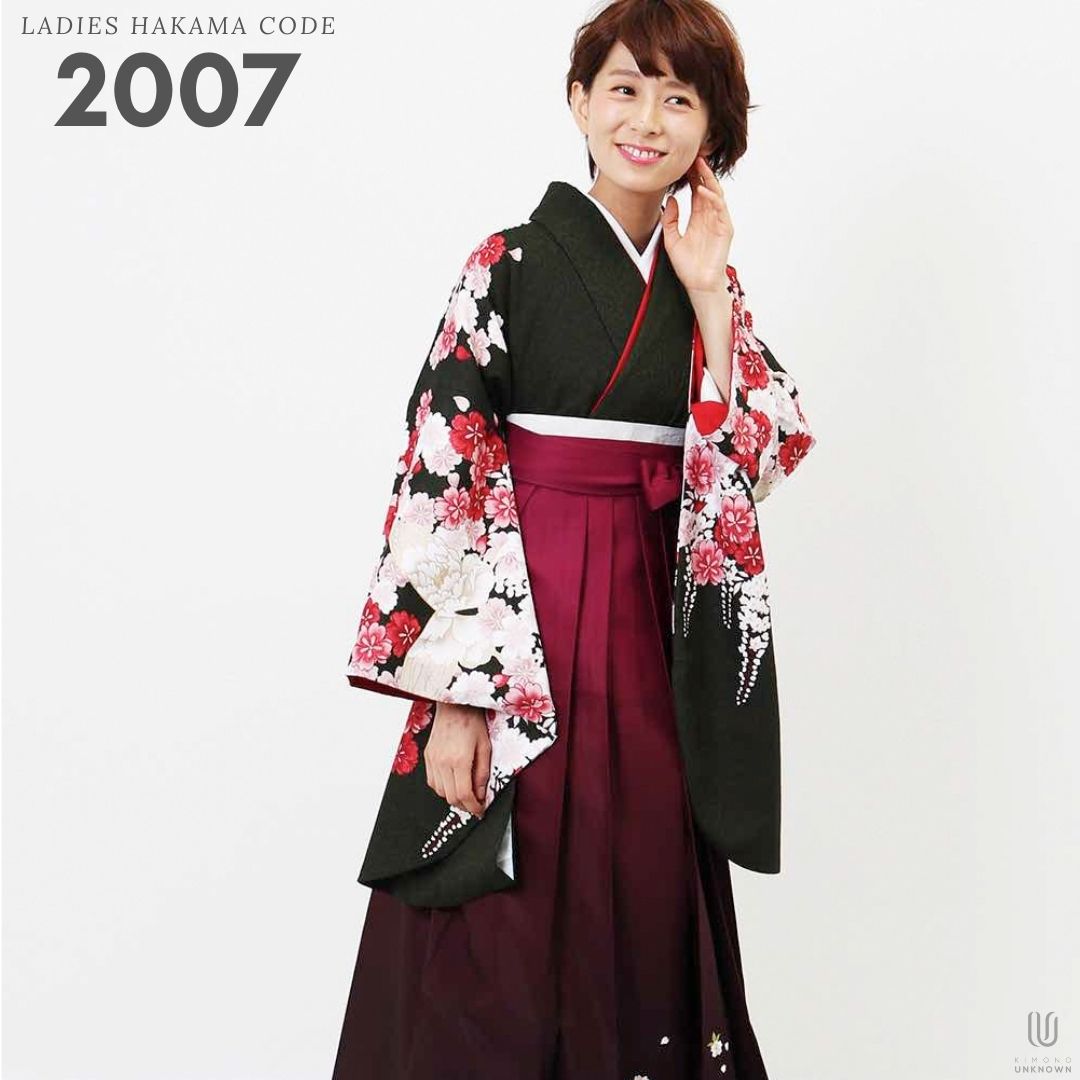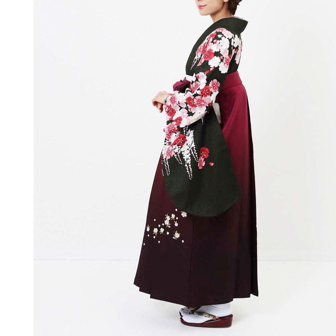 【対応身長 157cm~165cm】【正統派】 卒業式レンタル袴フルセット-2007 花柄 黒 赤
