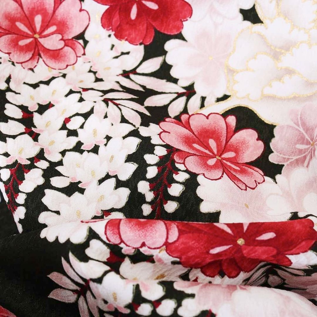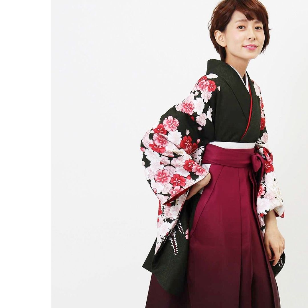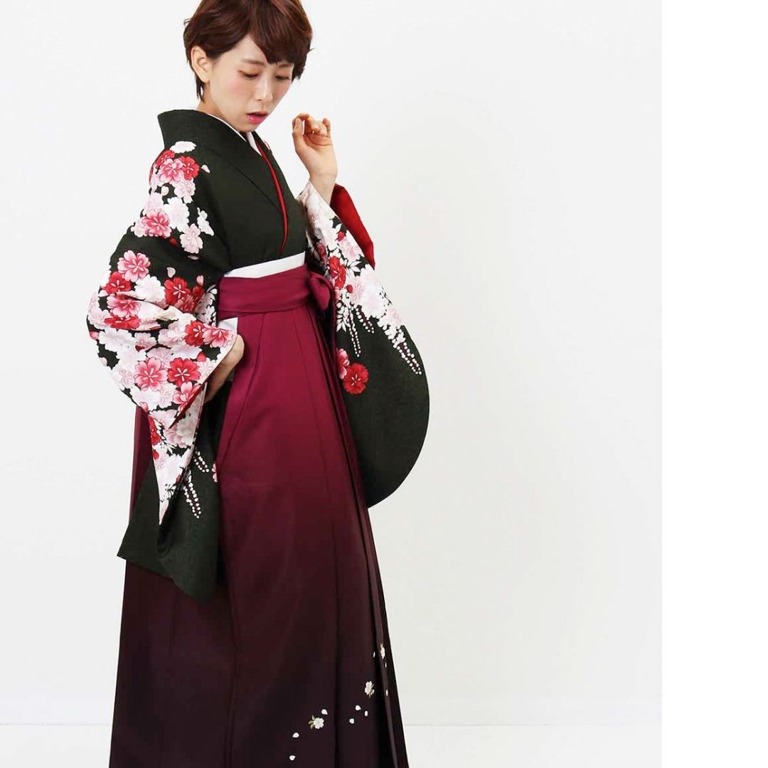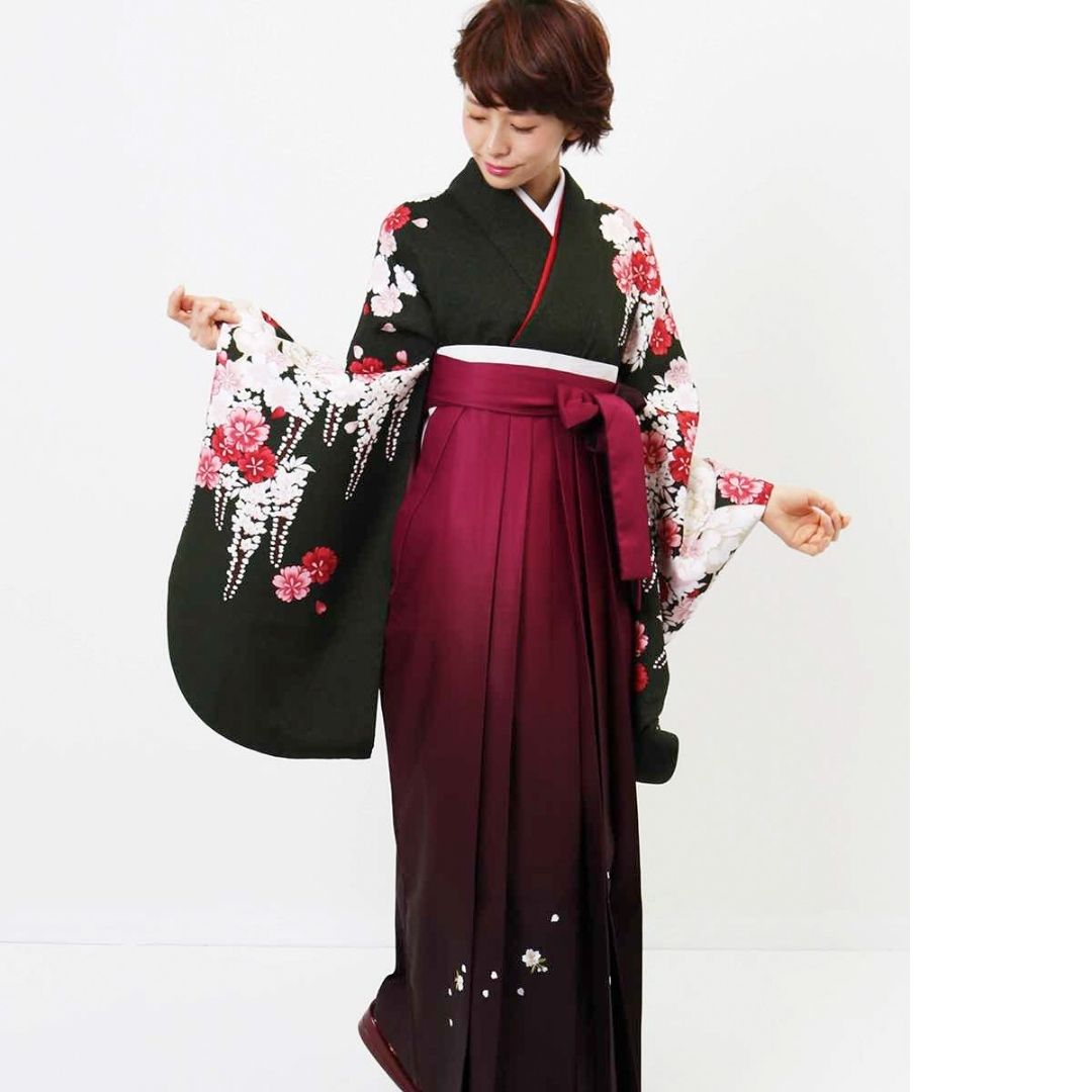 【対応身長 157cm~165cm】【正統派】 卒業式レンタル袴フルセット-2007 花柄 黒 赤