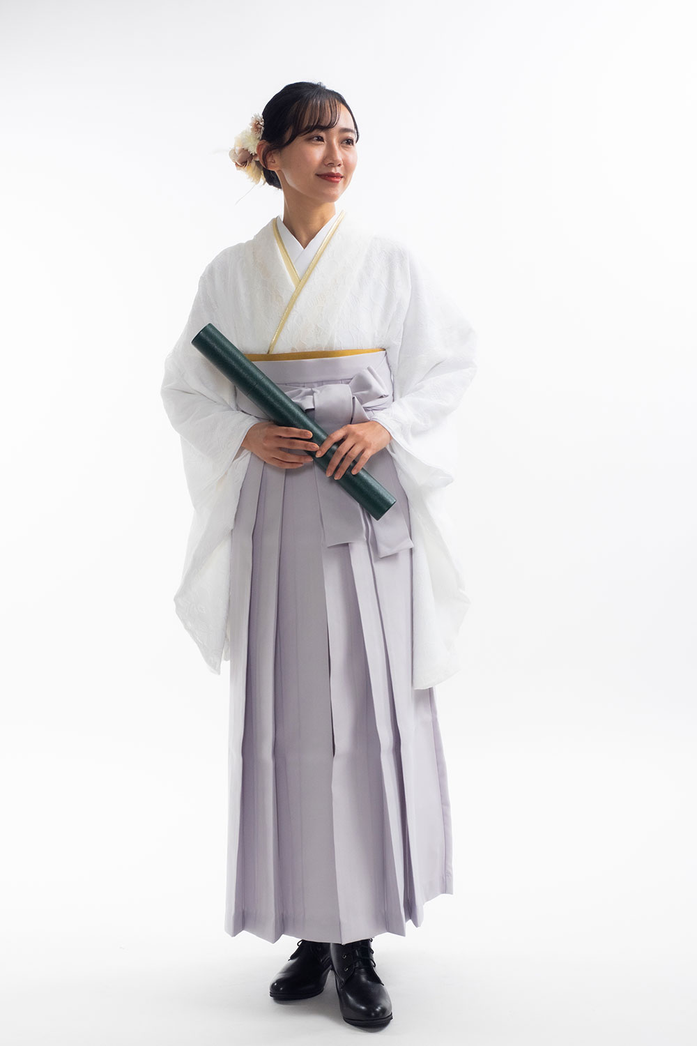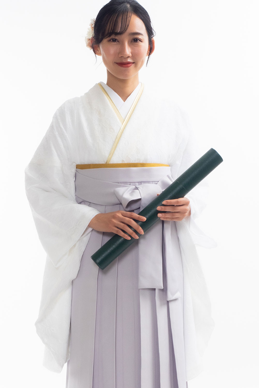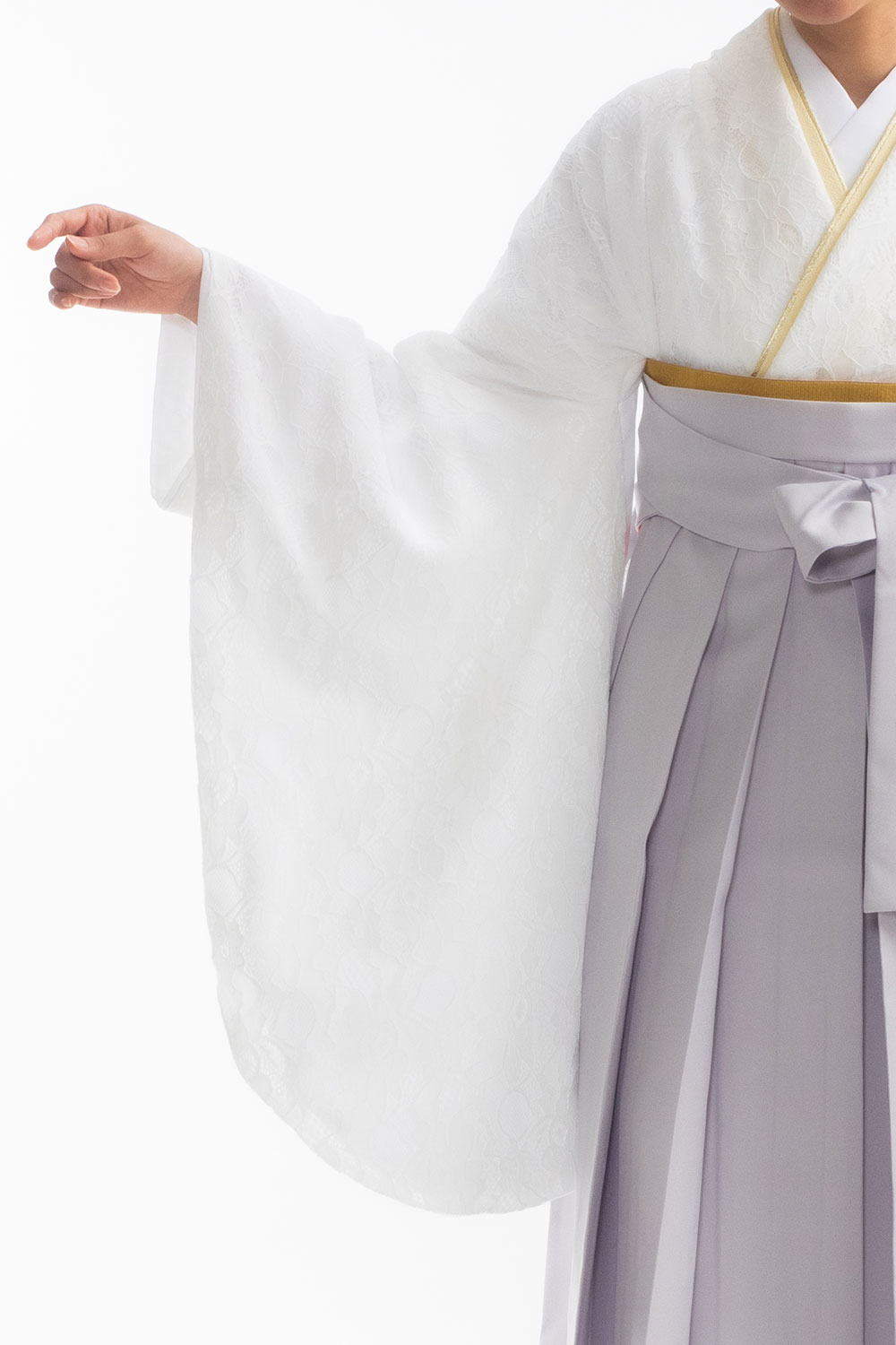 【対応身長 150cm~157cm】【キュート】卒業式レンタル袴フルセット-2099 レース着物 白地 グレー