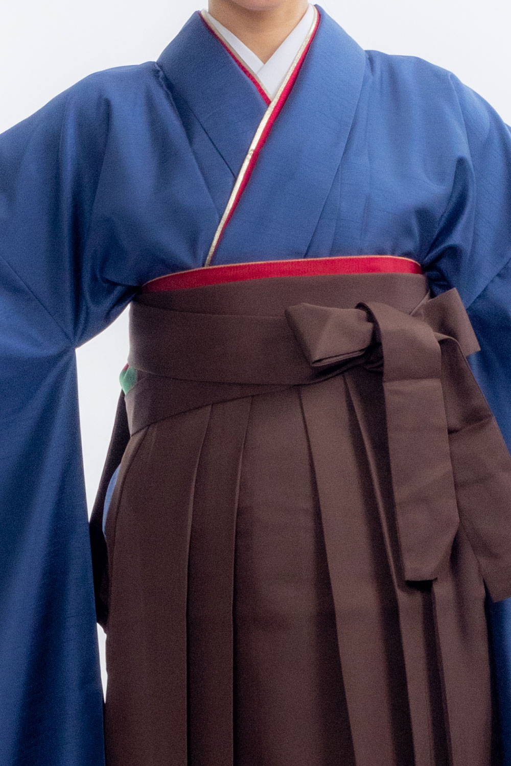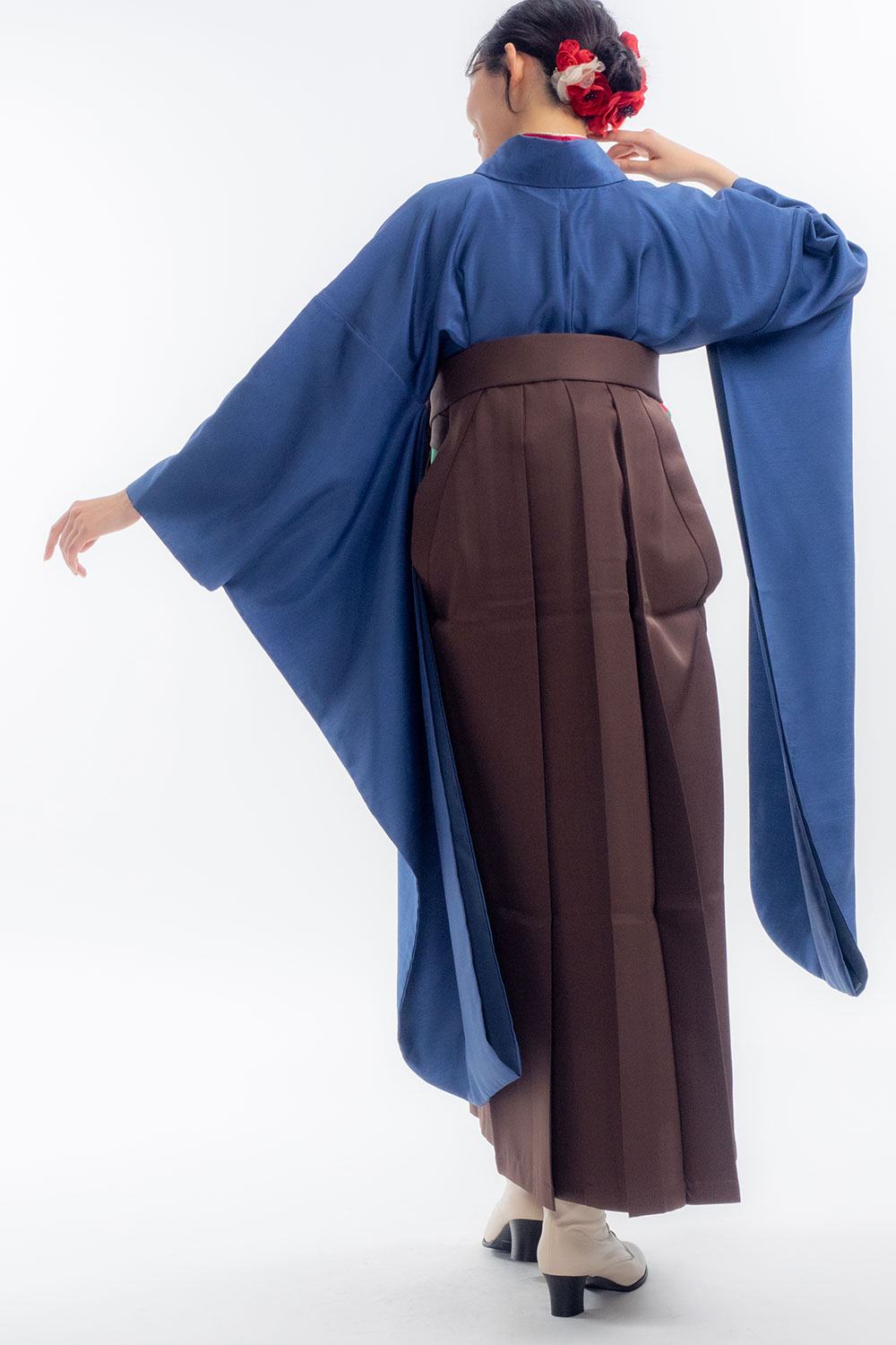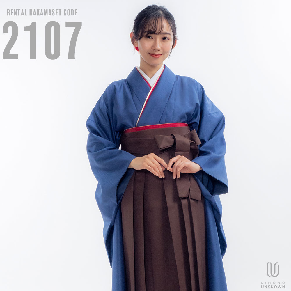 【対応身長 150cm~157cm】【正統派】卒業式レンタル袴フルセット-2107【振袖タイプ】 夢助 青 無地袴 茶色