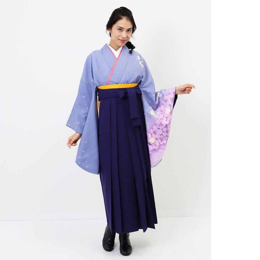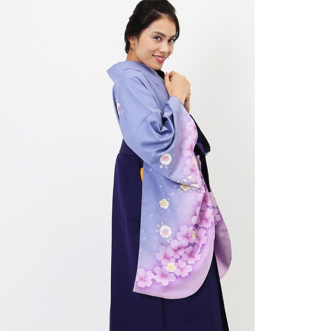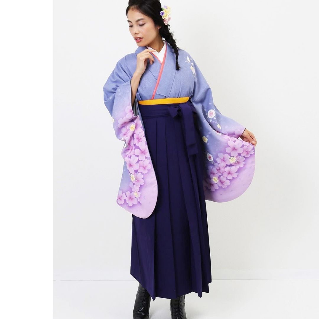 【対応身長 150cm~157cm】【正統派】 卒業式レンタル袴フルセット-741 マルチカラー 花柄 桜 紫