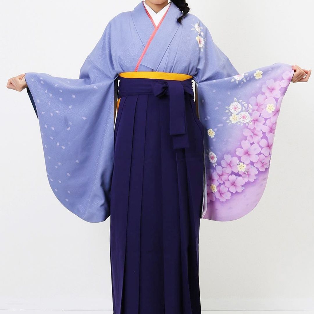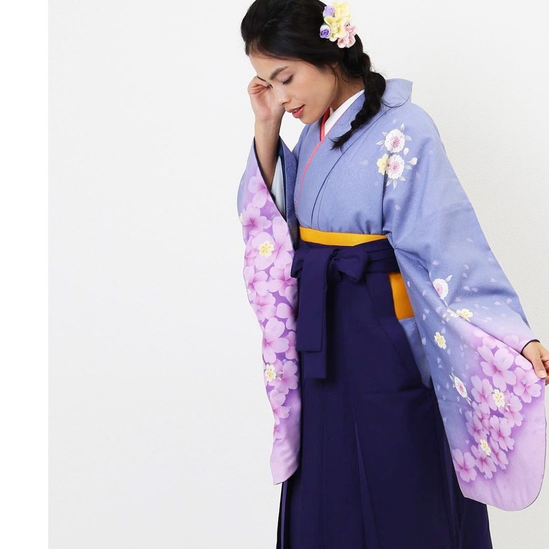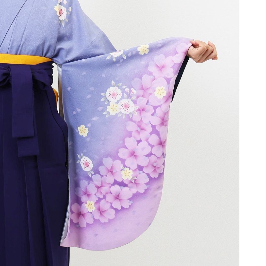 【対応身長 150cm~157cm】【正統派】 卒業式レンタル袴フルセット-741 マルチカラー 花柄 桜 紫