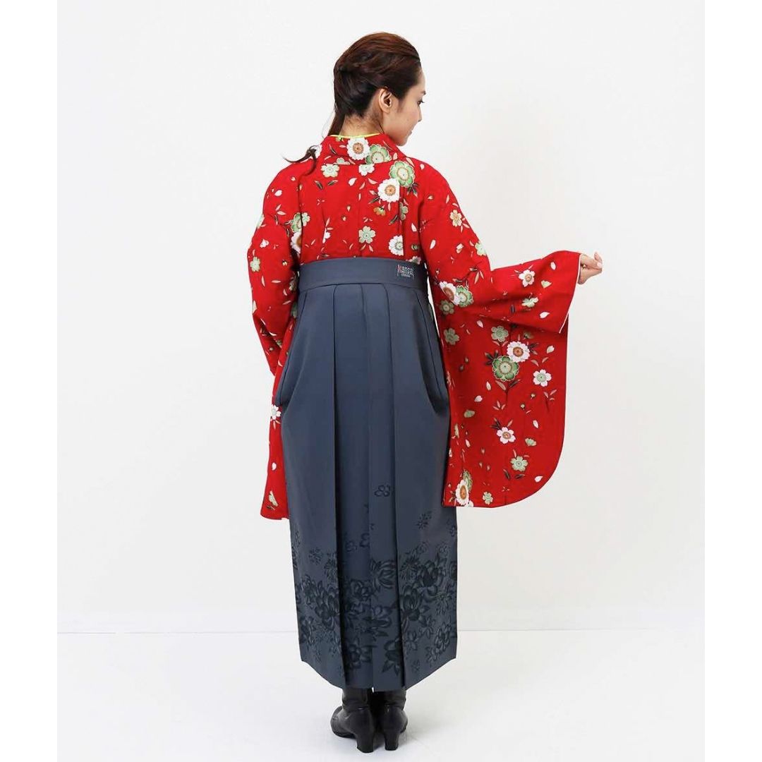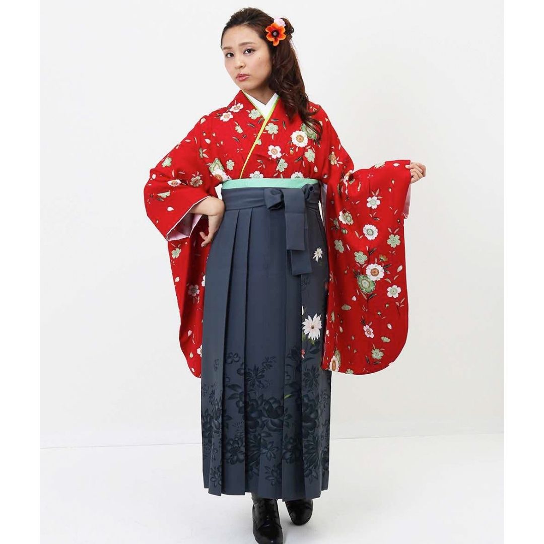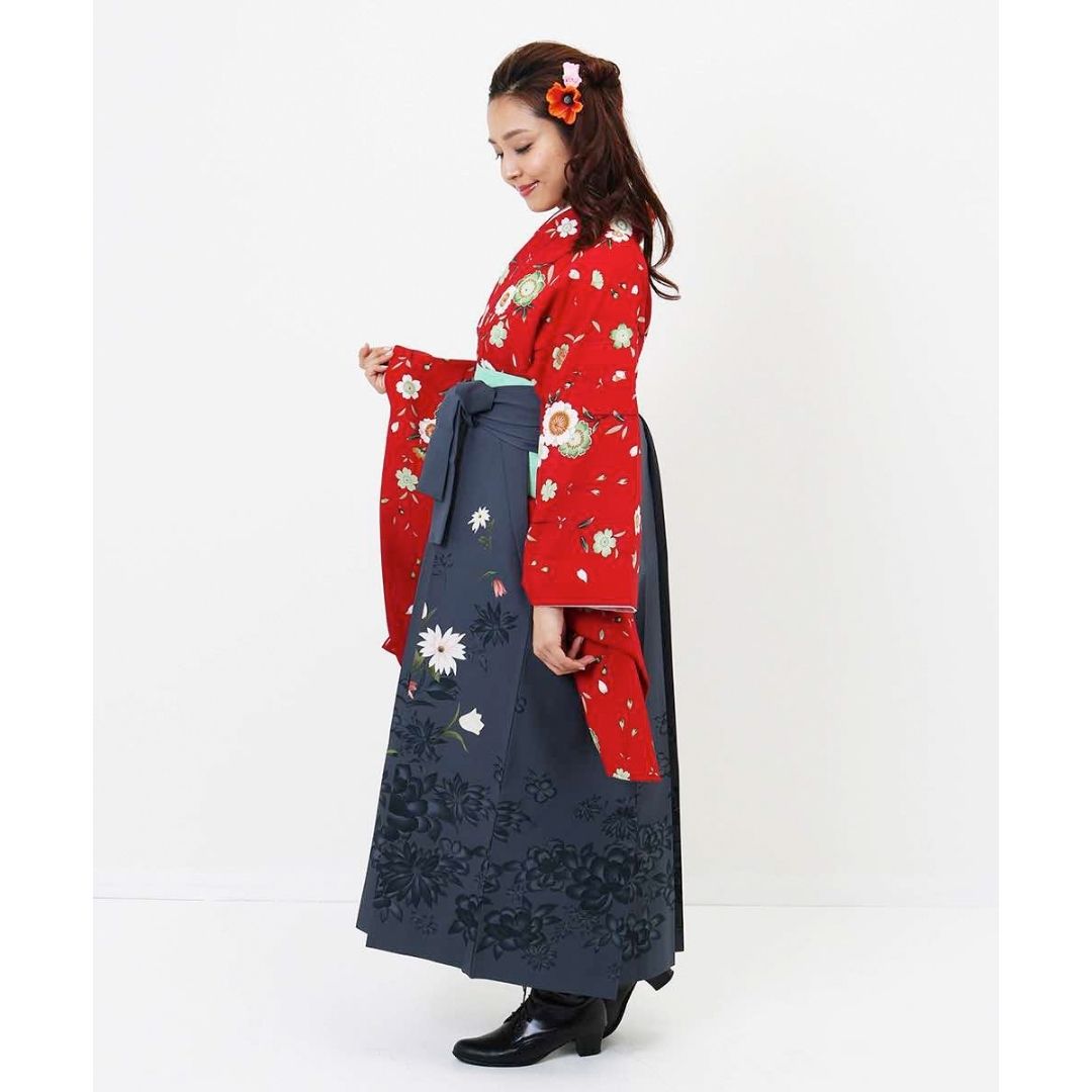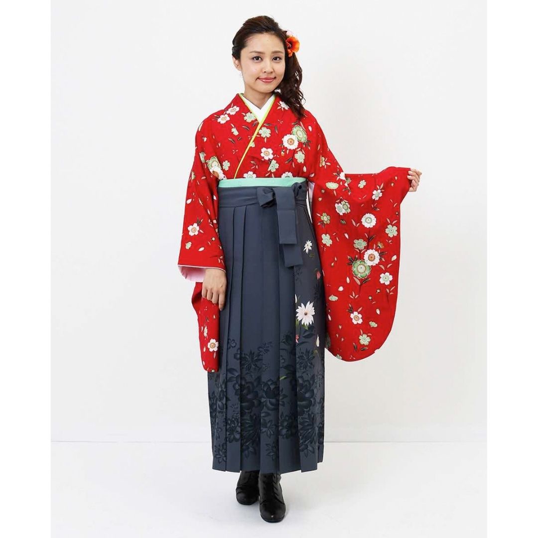 【対応身長 150cm~157cm】【キュート】 卒業式レンタル袴フルセット-833 マルチカラー 花柄 桜 赤 緑 グレー