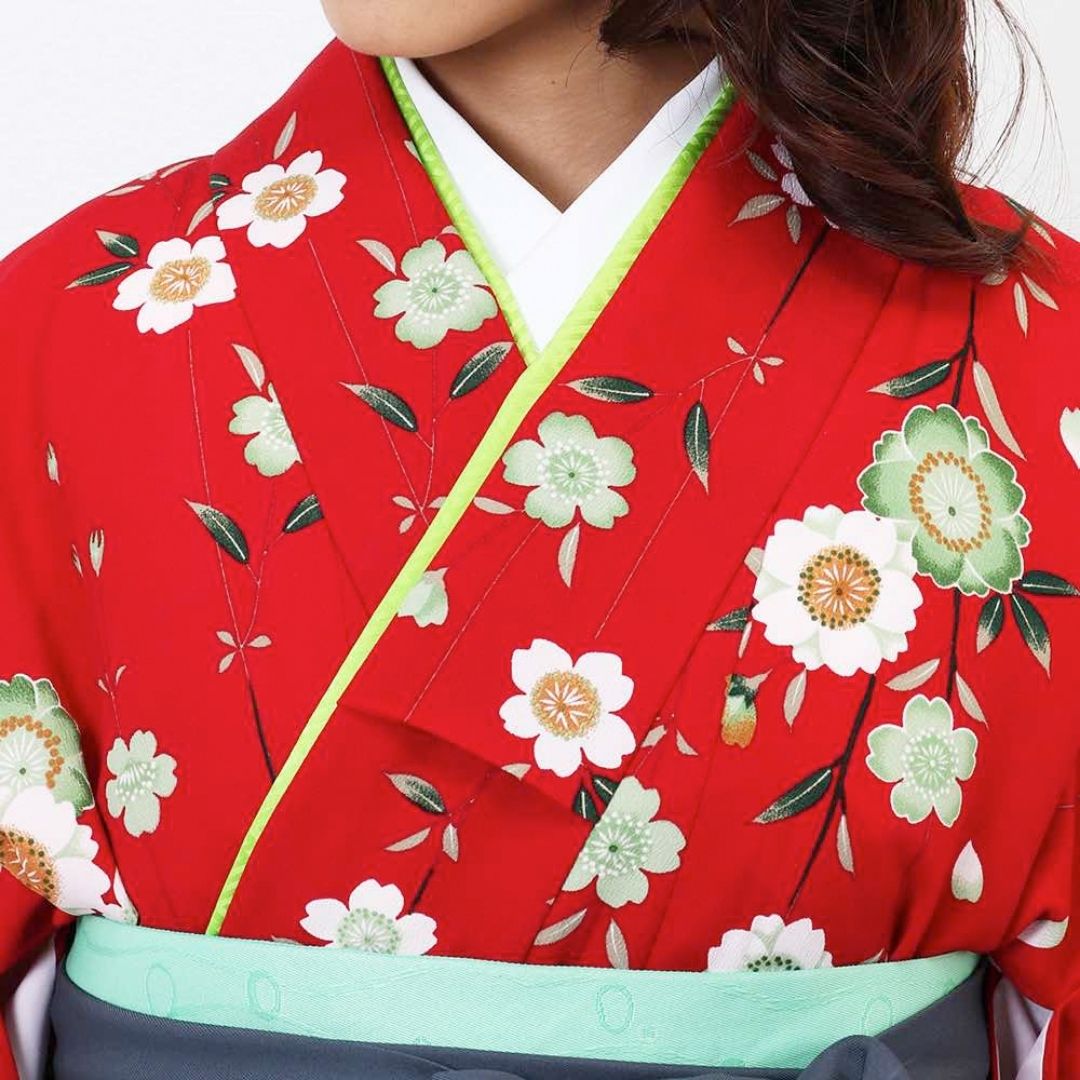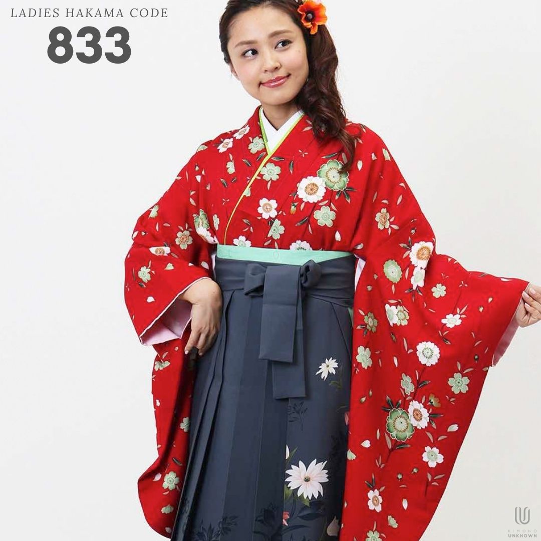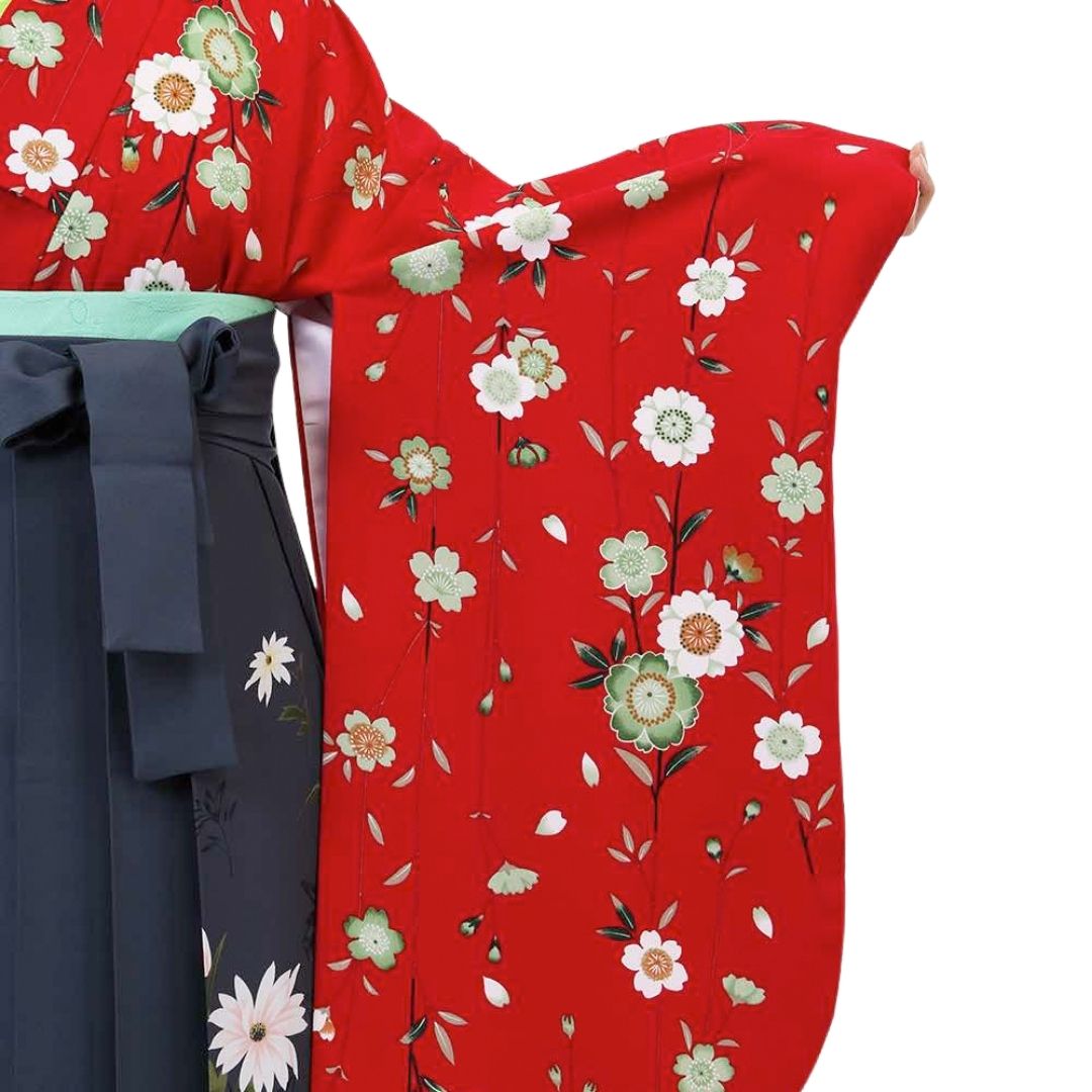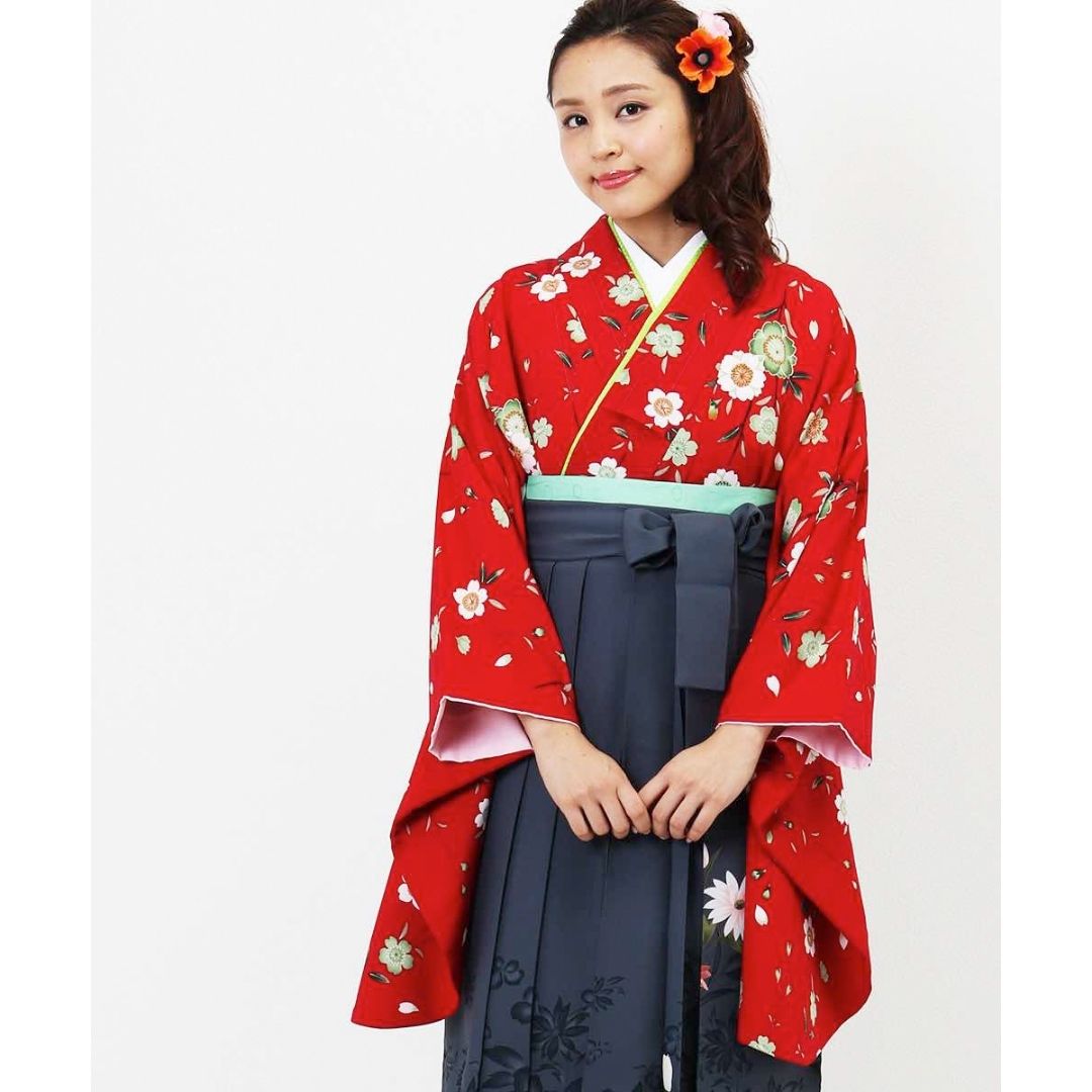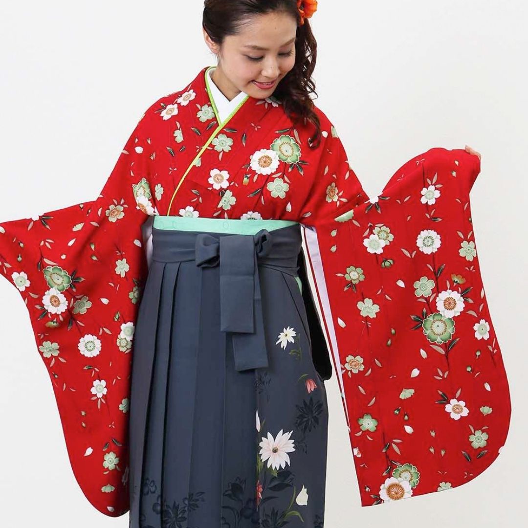 【対応身長 150cm~157cm】【キュート】 卒業式レンタル袴フルセット-833 マルチカラー 花柄 桜 赤 緑 グレー