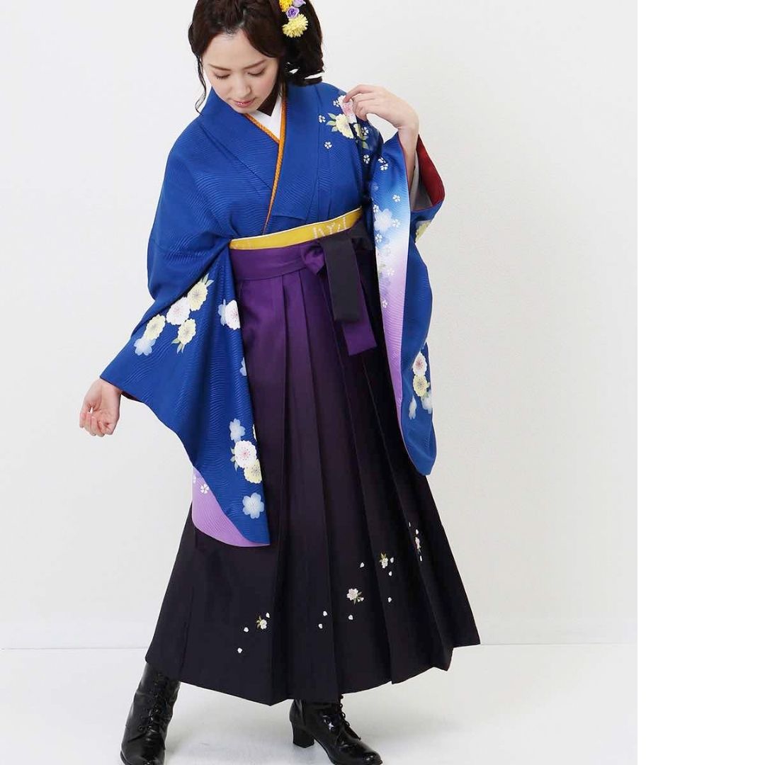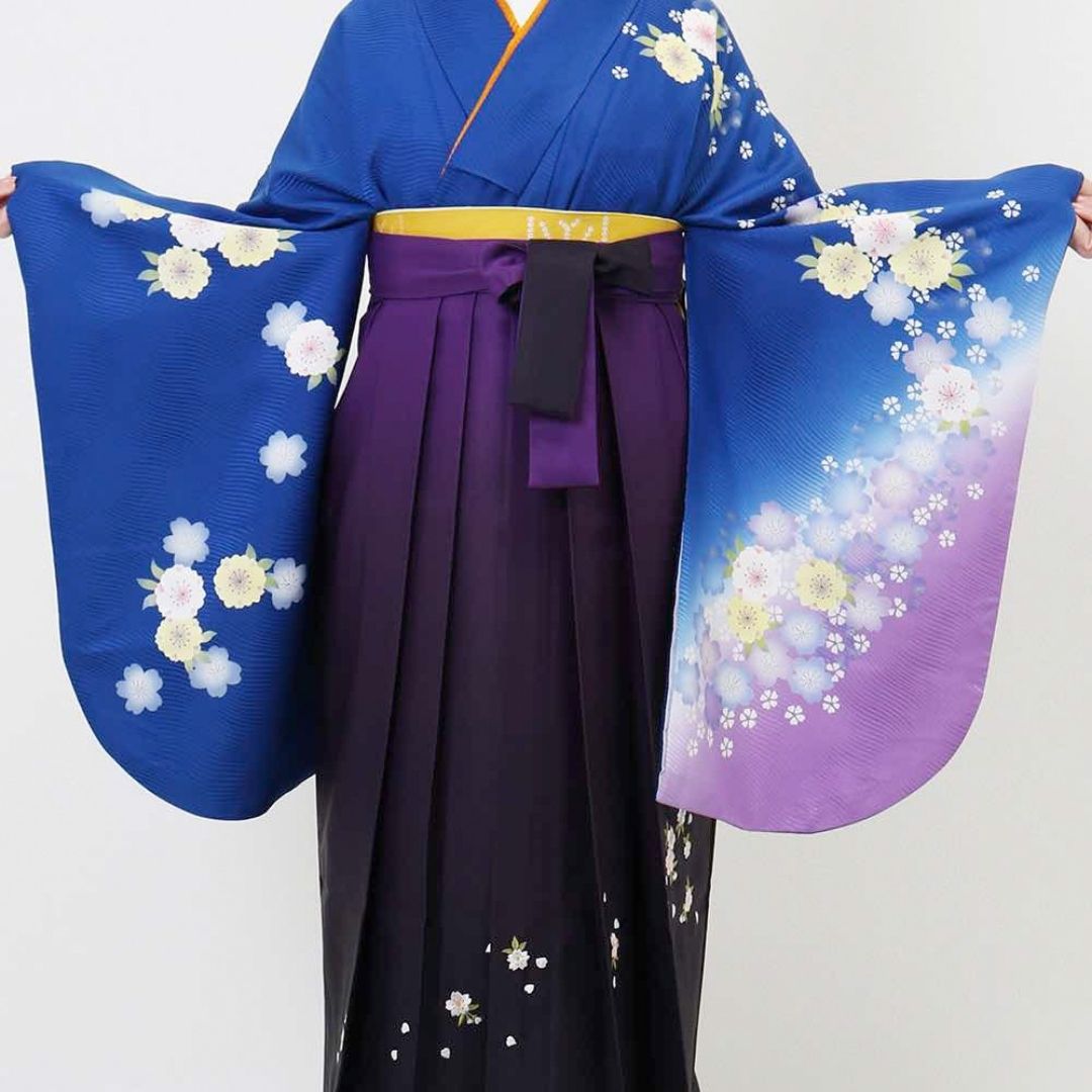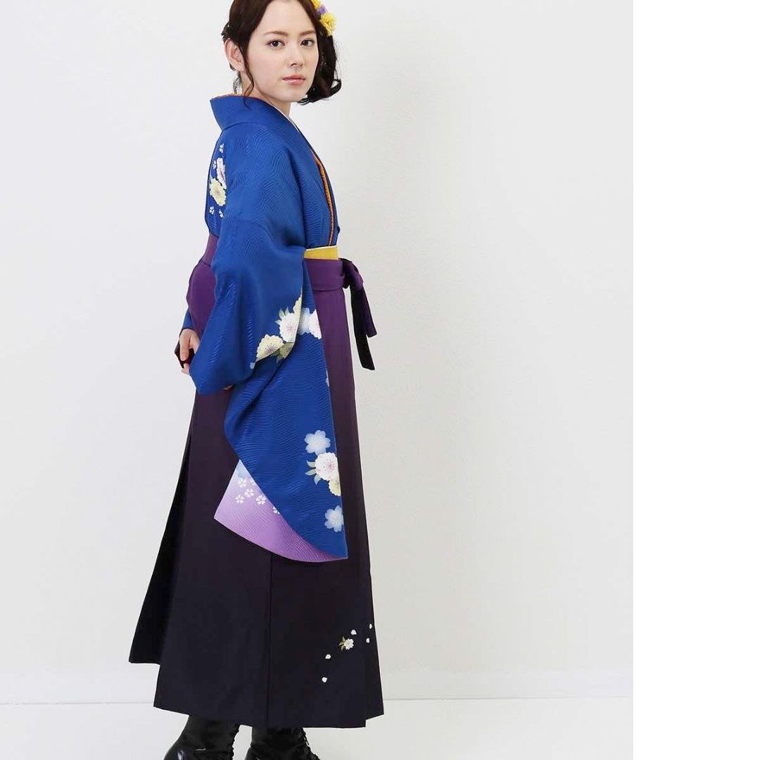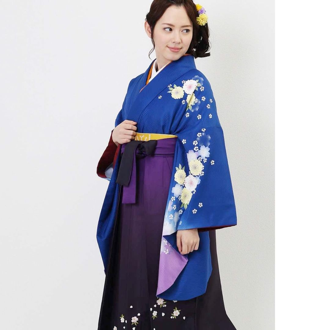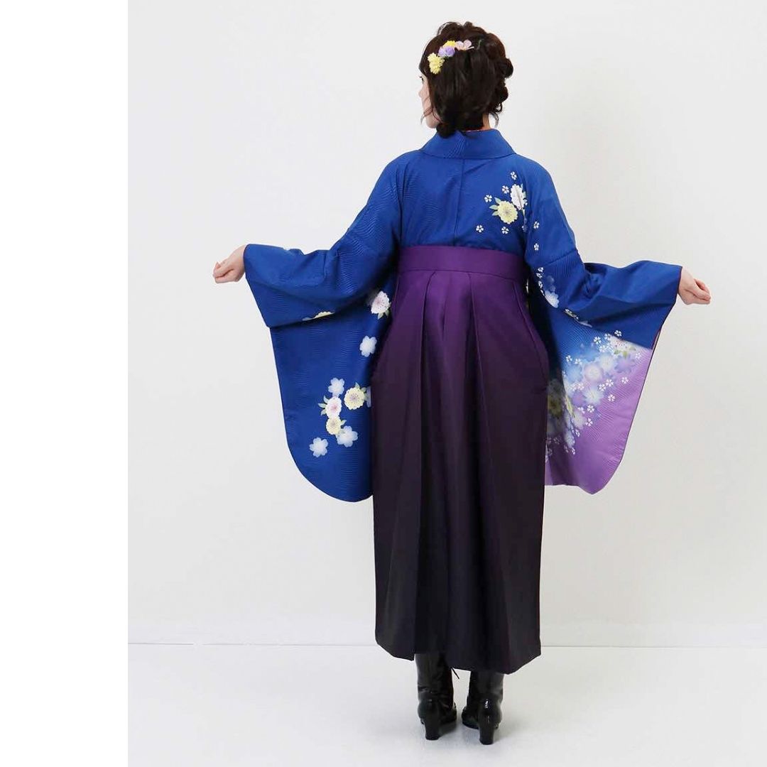 【対応身長 157cm~165cm】【正統派】 卒業式レンタル袴フルセット-931 マルチカラー 花柄 桜 青 紫