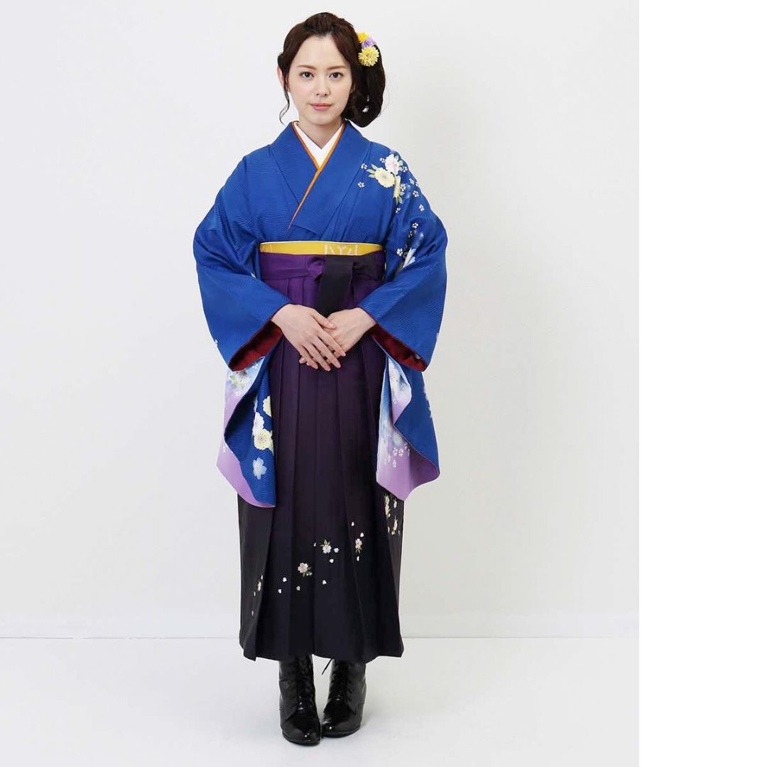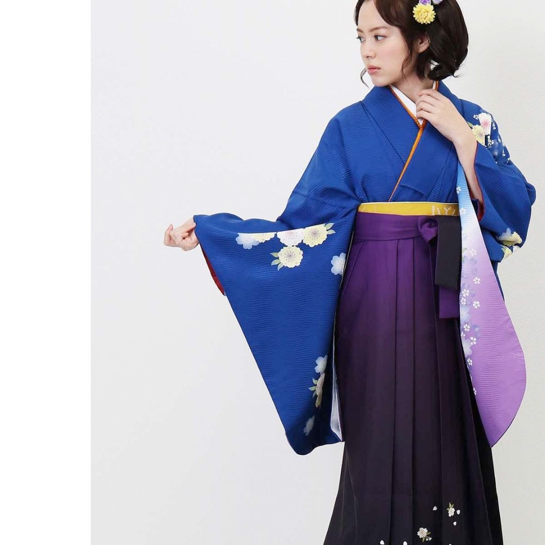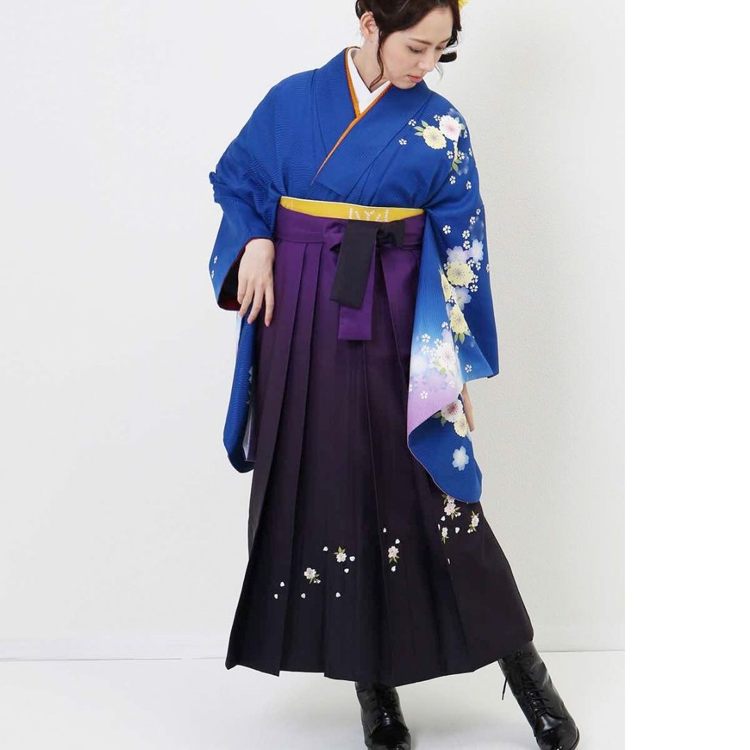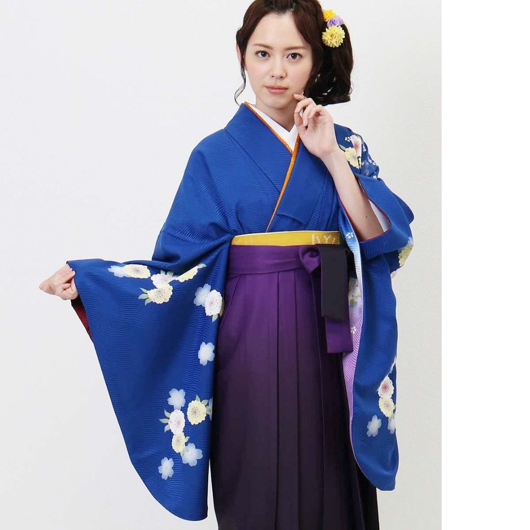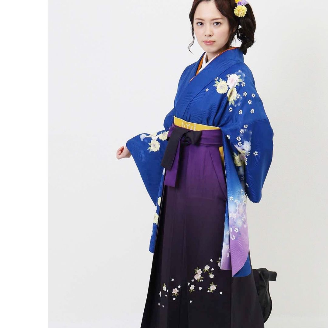 【対応身長 157cm~165cm】【正統派】 卒業式レンタル袴フルセット-931 マルチカラー 花柄 桜 青 紫