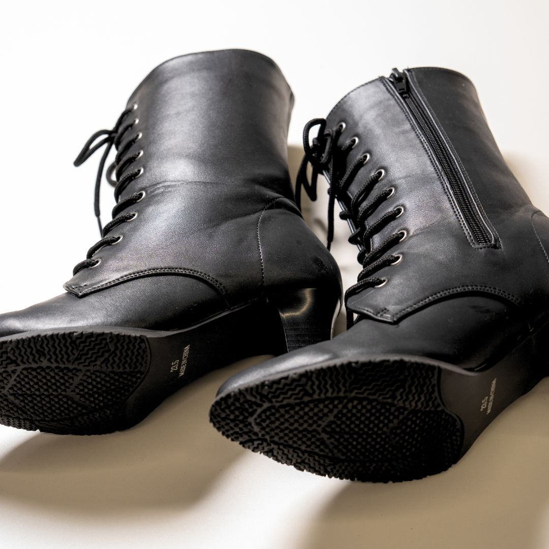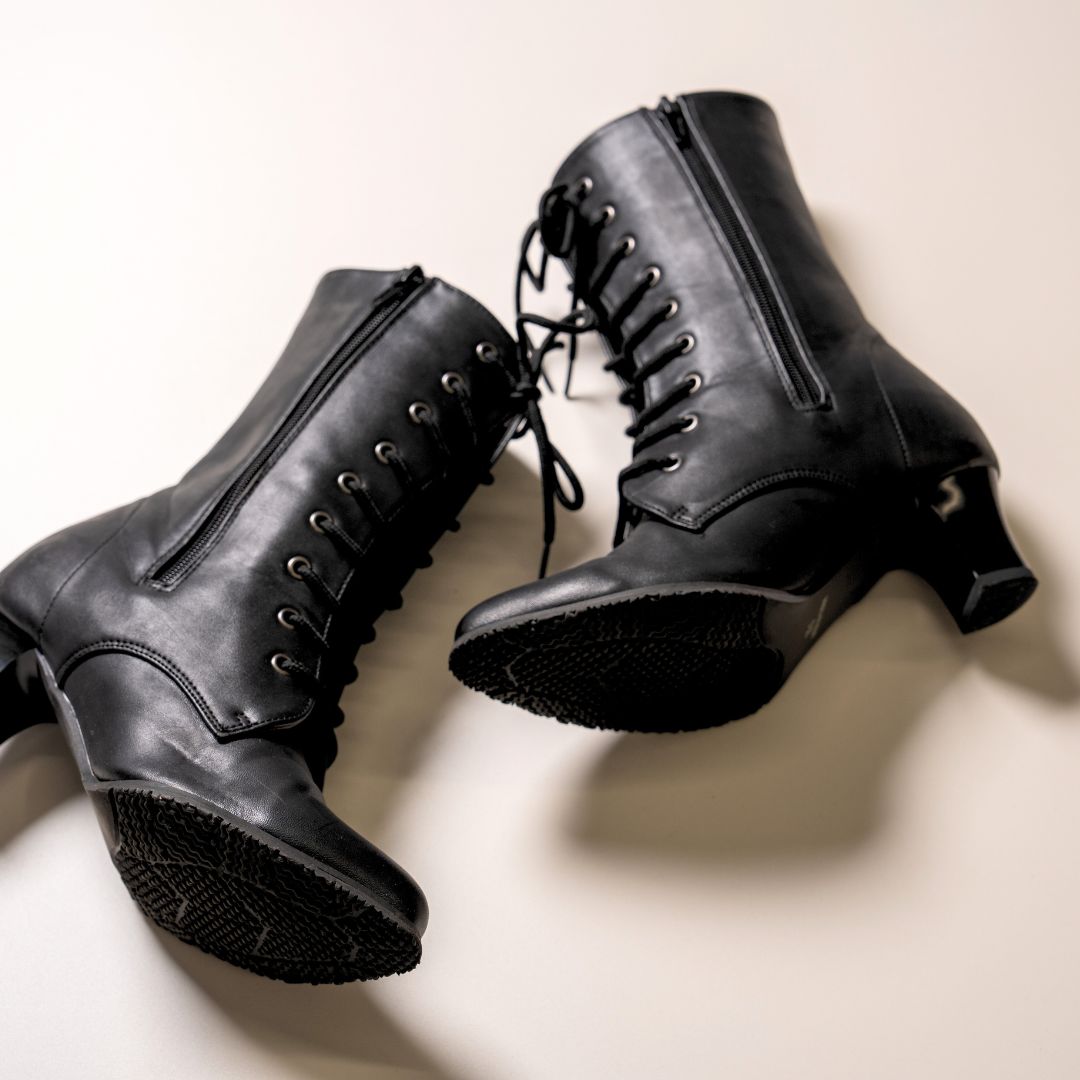 レンタル卒業式はかま用ブーツ 23.5【ブラック2-黒2-】|セット草履からの変更ブーツのみのレンタル可能|黒|ダークグレー|編み上げブーツ|