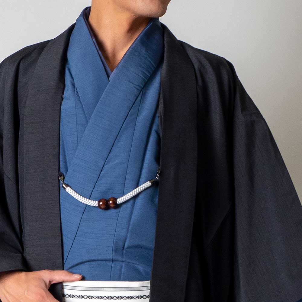 メンズ着物アンサンブル【対応身長160cm~170cm】【 Sサイズ】フルセットー着物ブルー×羽織ブラック 着流し 羽織 パパ着物 父親 春 秋 冬 着付け簡単 おしゃれ着 カジュアル 貸衣装 レンタル衣裳