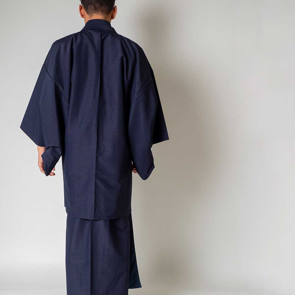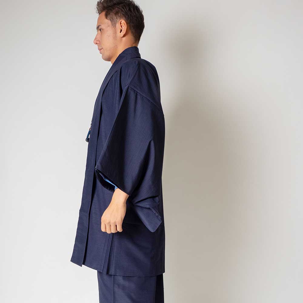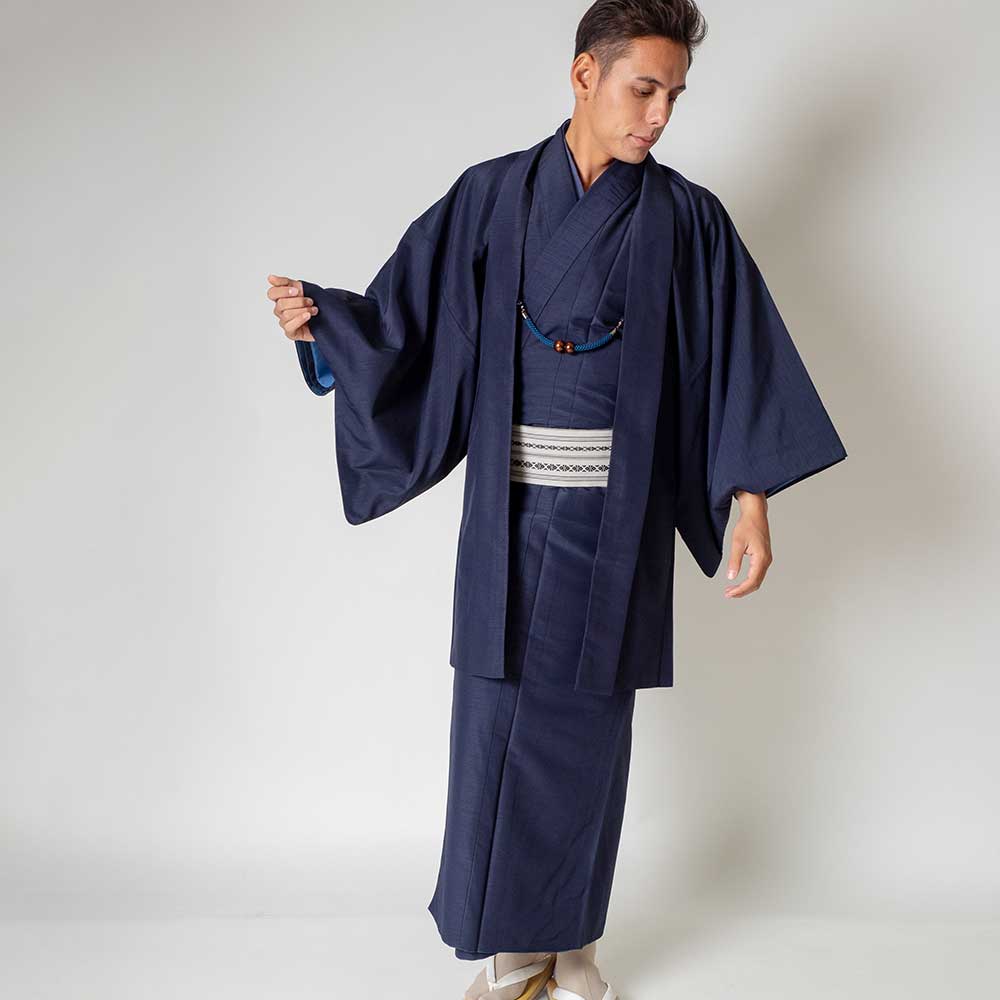 メンズ着物アンサンブル【対応身長180cm~190cm】【 3Lサイズ】フルセットー着物ネイビー×羽織ネイビー 着流し 羽織 パパ着物 父親 春 秋 冬 着付け簡単 おしゃれ着 カジュアル 貸衣装 レンタル