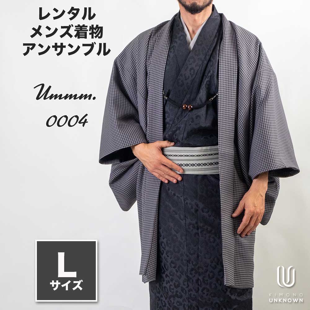 メンズ着物アンサンブル【対応身長170cm~180cm】【 Lサイズ】フルセットーUmmm.0004 レンタル期間最大9泊10日着付けの練習も安心