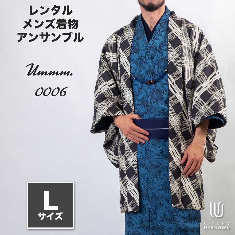 メンズ着物アンサンブル【対応身長170cm~180cm】【 Lサイズ】フルセットーUmmm.0006 レンタル期間最大9泊10日着付けの練習も安心