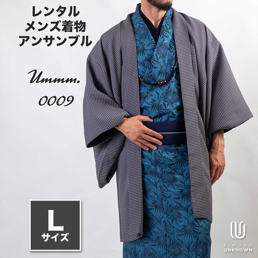 メンズ着物アンサンブル【対応身長170cm~180cm】【 Lサイズ】フルセットーUmmm.0009 レンタル期間最大9泊10日着付けの練習も安心