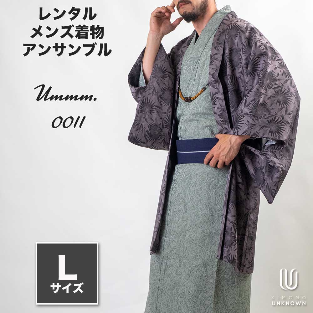 メンズ着物アンサンブル【対応身長170cm~180cm】【 Lサイズ】フルセットーUmmm.0011 レンタル期間最大9泊10日着付けの練習も安心