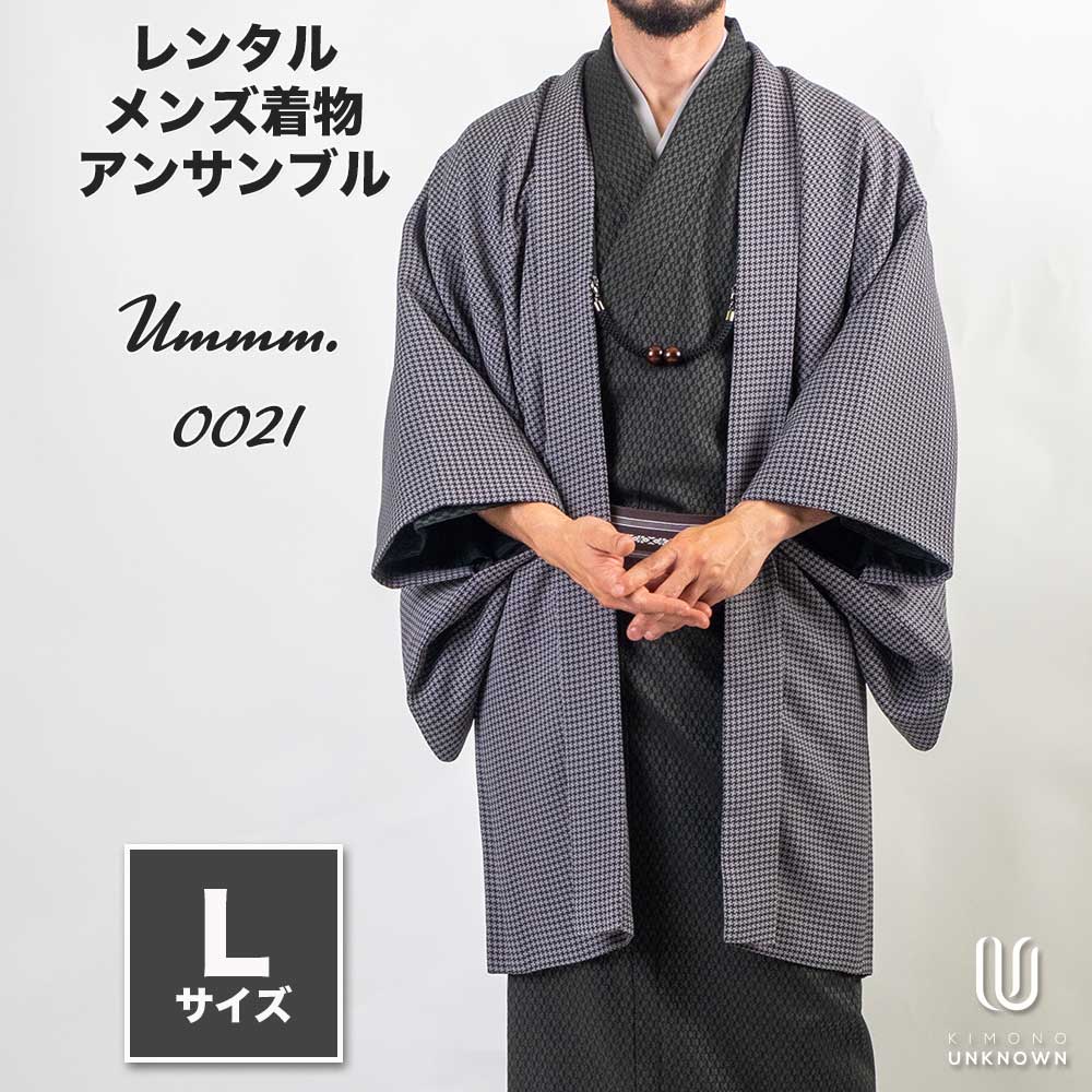 メンズ着物アンサンブル【対応身長170cm~180cm】【 Lサイズ】フルセットーUmmm.0021 レンタル期間最大9泊10日着付けの練習も安心