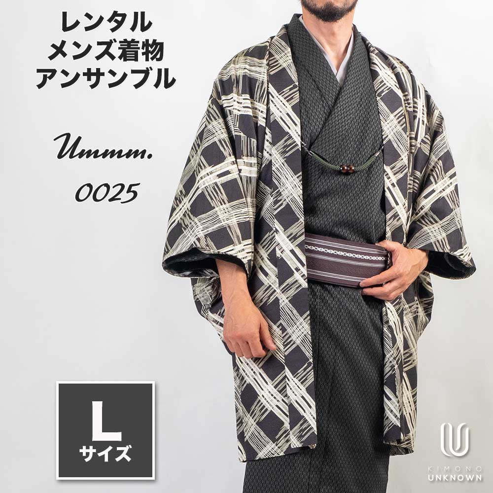 メンズ着物アンサンブル【対応身長170cm~180cm】【 Lサイズ】フルセットーUmmm.0025 レンタル期間最大9泊10日着付けの練習も安心